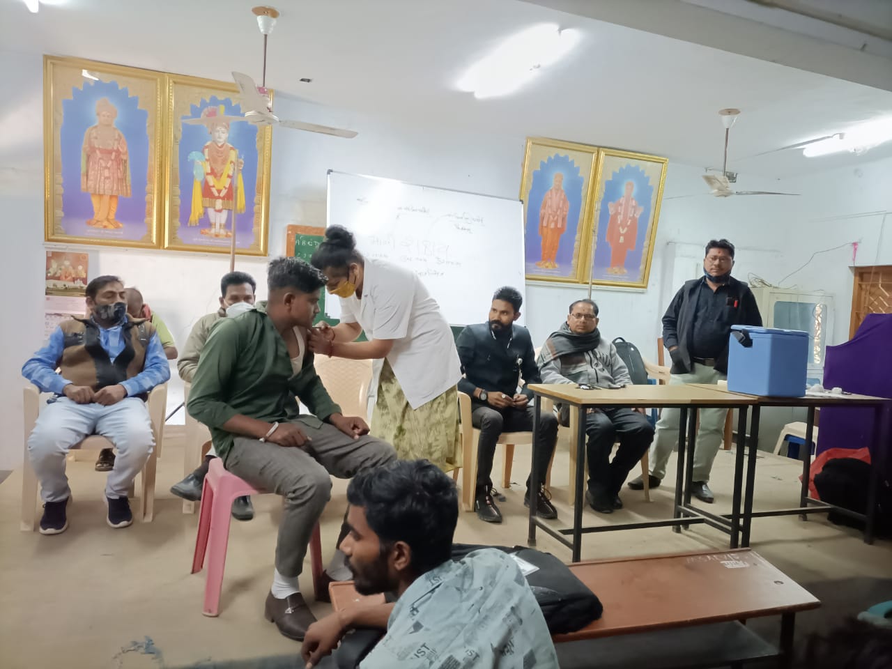 હાલ ત્રીજી લહેર ના ભણકારા વાગી રહ્યા છે અને સરકાર તરફથી રસીકરણ માટે ભાર મૂકવામાં આવ્યો છે ત્યારે તેના ભાગરૂપે પંચમહાલ ના શહેરા તાલુકાના મુક્તજીવન સ્વામીબાપા આર્ટસ કોલેજ વાઘજીપુર ખાતે બી.એ.સેમ ૧ માં અભ્યાસ કરતા ૧૮ વર્ષના યુવક યુવતીઓને કોરોના વેક્સિન આપવાનો મહત્વનો અભિગમ સરકારની નવી ગાઈડ લાઈન મુજબ ચાલી રહ્યો છે ત્યારે મુક્ત જીવન સ્વામીબાપા આર્ટસ કોલેજ વાઘજીપુર ના આચાર્ય ડૉ.અશોક બારીઆ ના માર્ગદર્શન હેઠળ તેમજ એન.એસ.એસ વિભાગના સંયુક્ત ઉપક્રમે ૧૫થી૧૮ વર્ષ સુધી ના વિદ્યાર્થીઓ અને વિદ્યાર્થીનીઓને કોરોના વેક્સિન નો પ્રથમ ડોઝ સાથે રસીકરણ કેમ્પ યોજવામાં આવ્યો હતો. જેમાં વાઘજીપુર આરોગ્ય કેન્દ્રના કર્મચારીઓ દ્વારા મોટા ભાગના વિદ્યાર્થીઓને રસીકરણ કરવામાં આવ્યું હતું.એન.એસ.એસ વિભાગના પ્રોગ્રામ ઓફિસર ડૉ.નરેશ પટેલે કોવિડ રસી વિશે માર્ગદર્શન પૂરું પાડ્યું હતું અને વિદ્યાર્થીનીઓએ આરોગ્ય ખાતાને સહયોગ આપી રસી મુકાવીહતી.આ કાર્યક્રમને સફળ બનાવવા માટે cwdc ના કનવિનર પ્રા.તારાબેન બારીઆ કોલેજ સ્ટાફના પ્રા.કે.એફ.પરમાર તથા પ્રાથમિક આરોગ્ય કેન્દ્ર વાઘાજીપુર પ્રાથમિક આરોગ્ય કેન્દ્રના મેડિકલ સોફિસર ડૉ.કિશોર વાઘેલા સહિત સ્ટાફ વેક્સિન કેમ્પમાં જોડાયા હતા અને સમગ્ર કાર્યક્રમ ને સફળ બનાવ્યો હતો.