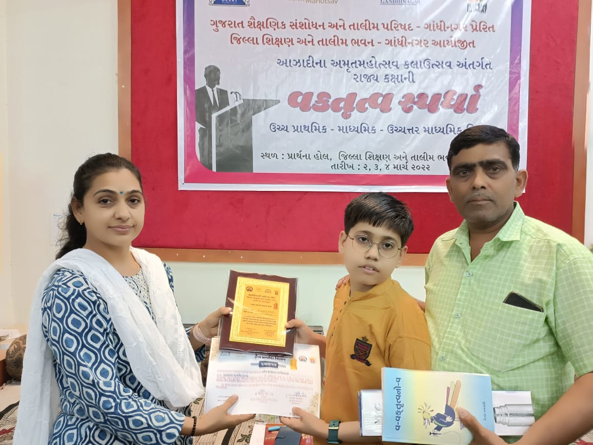ગુજરાત શૈક્ષણિક સંશોધન અને તાલીમ પરિષદ ગાંધીનગર પ્રેરિત,જીલ્લા શિક્ષણ અને તાલીમ ભવન ગાંધીનગર આયોજિત આઝાદીના અમૃત મહોત્સવ કલાઉત્સવ અંતર્ગત રાજ્ય કક્ષાની વકતૃત્વ સ્પર્ધામાં દાહોદ જિલ્લાનું પ્રતિનિધિત્વ કરતાં ઉત્કૃષ્ઠ પ્રદર્શન કરવા બદલ પટેલ યુગ કલ્પેશકુમાર વગેલા, વર્ગ ખરસાણા પ્રા.શાળા ,શંકરપુરા ,દાહોદ જીલ્લા વતી રાજ્ય કક્ષાએ ઝાલોદ તાલુકાનું ગૌરવ વધાર્યું હતું