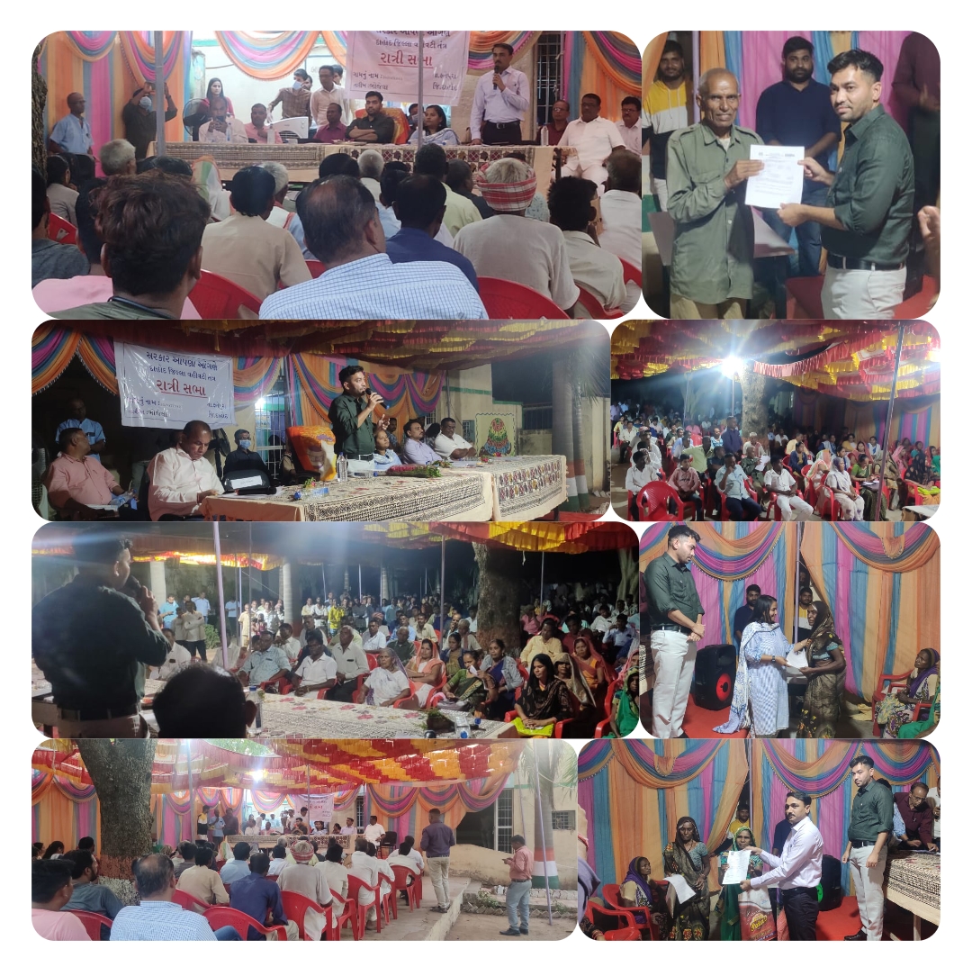 જેમાં પદ અધિકારીઓની ઉપસ્થિતિમાં વિધવા બહેનો અને વૃધ્ધોને સહાય હુક્મ આપવામાં આવ્યા જેમાં દાહોદ જિલ્લા ક્લેક્ટર ડૉ હર્ષિત ગોસાવી સાહેબ અને જિલ્લા વિકાસ અધિકારી સુશ્રી નેહા કુમારી અને ઝાલોદ પ્રાંત અધિકારી શ્રી આર આર ગોહેલ સાહેબ સહિતના પદ અધિકારીઓ તેમજ ગામજનો રાત્રી સભા માં ઉપસ્થિતિ રહ્યા હતાં