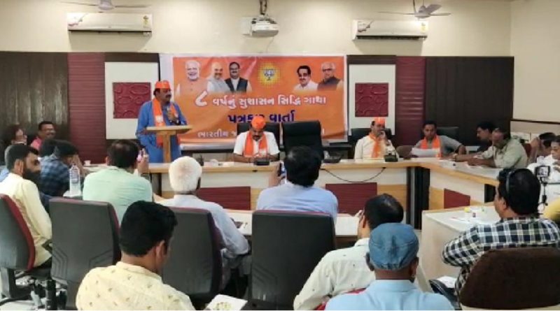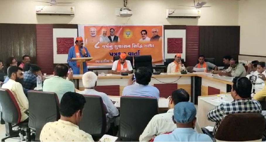 જેમાં દાહોદ જિલ્લા ભાજપ પ્રમુખ દ્વારા સંબોધન કરતા જણાવ્યું હતું કે ૨૦૧૪ પેહલા આપડે ભ્રષ્ટાચાર , ગોટાળા અને ગેર વહીવટ અને ગરીબોને પોતાના લાભો માત્ર કાગળ ઉપર પ્રાપ્ત થતાં હતા જ્યારે હાલમાં લોકોના ખાતામાં સીધી સહાય પહો છે મોટી બીમારી માટે લોકોને કોઈ પણ ગરીબ વ્યક્તિને હાથ કોઈની પાસે લંબાવો ના પડે તે માટે આયુષમાન જેવી ખૂબ ઉપયોગી યોજના સૌચલાય વગેરે યોજનાઓ નો લાભ આપણે લઈ છીએ જ્યારે દાહોદ જિલ્લા સાંસદ એ કેન્દ્રની સરકાર દ્વારા થયેલ કામોમાં ની યાદ અપાવી હતી અને વિવિધ યોજનાઓમાં જેવી કે સ્માર્ટ સિટી દાહોદ માટે કરોડો રૂપિયા એક માત્ર નગર પાલિકા , પરેલ રેલવે કારખાનામાં હજારો કરોડના ખર્ચે લોકો વર્કશોપ એન્જિન માટે , મનરેગા હેઠળ ૧૮૧કરોડ, પ્રધાન મંત્રી આવાસ યોજના ૬૭૪ કરોડ, જનની સુરક્ષા ૫૩કરોડ, ૩૬૫ કરોડ ગરીબ અન્ન યોજના અંતર્ગત, ૨૧૯કરોડ નલ સે જલ યોજના આવી યોજનાઓ મળી કુલ ૨૮૬૭૮.૯૧કરોડ રૂપિયાની યોજનાઓનો લાભ લોકોને મળ્યો હોવાનું જણાવ્યું હતું. તમામ યોજનાઓ માટે આપડે મોદીસાહેબનો આભાર માન્ય છીએ અને આઠ વર્ષના સુશાસન ની સિધ્ધિઓ ગણાવી દાહોદના પત્રકારોનો આભાર માન્યો હતો અને ત્યાર પછી પત્રકારોના સાથે પ્રશ્નોત્તરી કરી તમામ સવાલોના જવાબ આપી જે પ્રશ્નો હતા તેને હલ કરવાની બાહેધરી આપી હતી.