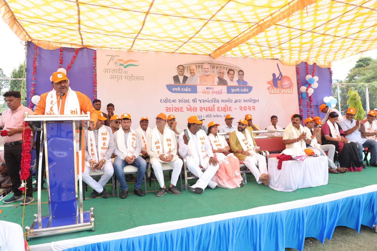 આજે દાહોદમાં સાંસદ જસવંતસિંહ ભાભોરે સાંસદ ખેલ સ્પર્ધાનું દાહોદ સીટી ગ્રાઉન્ડ ખાતેથી ઉદ્ઘાટન કર્યું. દાહોદ દાહોદ જિલ્લા દાહોદ જિલ્લા ભાજપા પ્રમુખ શંકરભાઈ આમલીયાર, પંચાયતના પ્રમુખ શીતલબેન વાઘેલા, નગરપાલિકાના પ્રમુખ રીનાબેન પંચાલ, શહેર ભાજપ પ્રમુખ પ્રશાંતભાઈ દેસાઈ, શહેર પ્રભારી ભરતસિંહ સોલંકી, જિલ્લા પંચાયતના સભ્ય સુધીરભાઈ લાલપુરવાલા તેમજ મહાનુભવો તેમજ કાર્યકર્તાઓ હાજર રહ્યાં હતાં. ક્રિકેટમાં લગભગ ૧૮ જેટલી ટીમોએ ભાગ લીધો છે. વોલીબોલનું પણ અલગ આયોજન કરવામાં આવેલ છે. કબડ્ડી પણ સાંસદ ખેલ સ્પર્ધાના અનુસંધાને ત્રિવેણીના મેદાનમાં શરૂઆત કરવામાં આવી હતી. ત્રણેય જગ્યાએ સાંસદ જસવંતસિંહ ભાભોર જઈને રમતોનો શુભઆરંભ કરાવ્યો હતો. દાહોદ શહેરના મોટાભાગના રમતવીરો હાજર રહ્યાં હતાં. કાર્યક્રમની શરૂઆત માં ભારતીની આરતી સાથે કરવામાં આવી હતી.