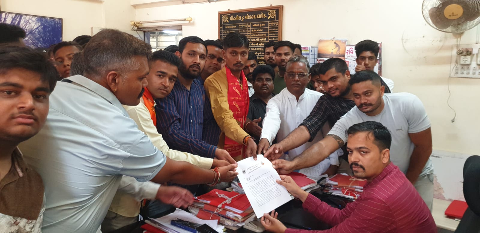 વિશ્વ હિન્દુ પરિષદ અને બજરંગ દળ દ્વારા દાહોદ જિલ્લા કલેકટરને દેશમાં વધતી જેહાદી હિંસા વિરૃધ્ધ કાર્યવાહી કરવા આવેદનપત્ર આપવામાં આવ્યું