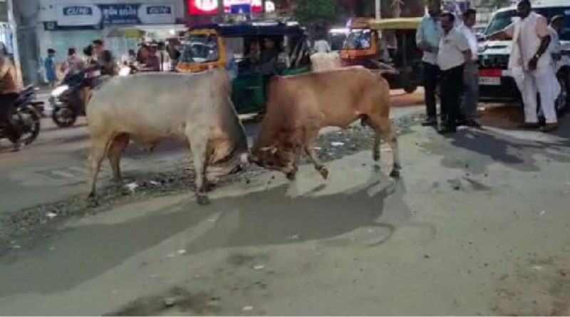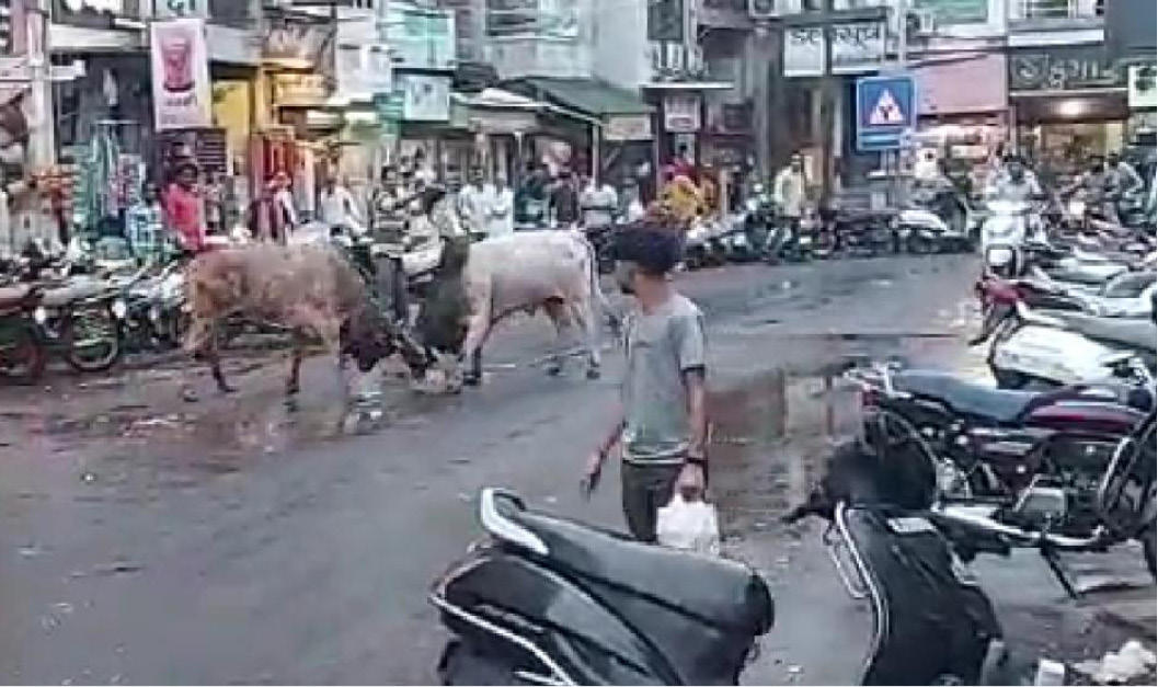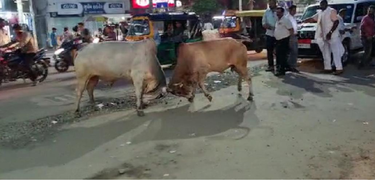 દાહોદ સ્માર્ટ સીટીમાં આમ તો હજ્જારો સમસ્યાથી પરંતુ તેમાંય ખાસ કરીને જાે મોટી સમસ્યા હોય તે જાહેરમાં રખડતાં પશુઓની સમસ્યાથી શહેરવાસીઓ હેરાન પરેશાન થઈ ગયાં છે ત્યારે છેલ્લા એક અઠવાડીયાથી જાહેર રસ્તાઓ ઉપર આખલાઓના યુધ્ધને પગલે વાહન ચાલકો અને રાહદારીઓમાં ભયનો માહોલ પણ જાેવા મળી રહ્યો છે. દાહોદ નગરપાલિકાની સામે અને દાહોદના સ્ટેશન રોડ ઉપર જાહેરમાં આખલાઓના યુધ્ધને પગલે વાહનોને નુકસાન સાથે સાથે લોકોના જીવને પણ જાેખમમાં મુકે તેવા આ યુધ્ધને પગલે શહેરવાસીઓમાં આખલાઓને જાેઈ એક પ્રકારનો ભય પણ જાેવા મળી રહ્યો છે.