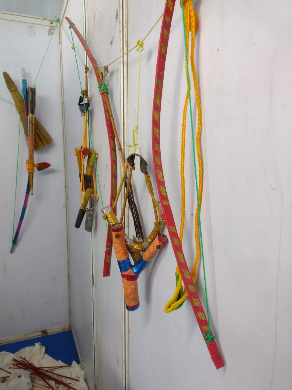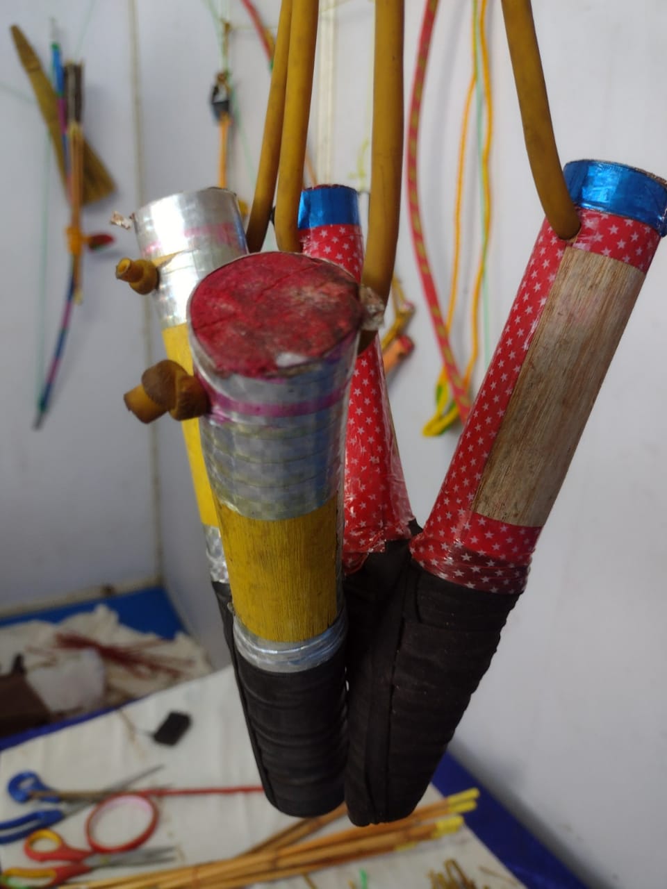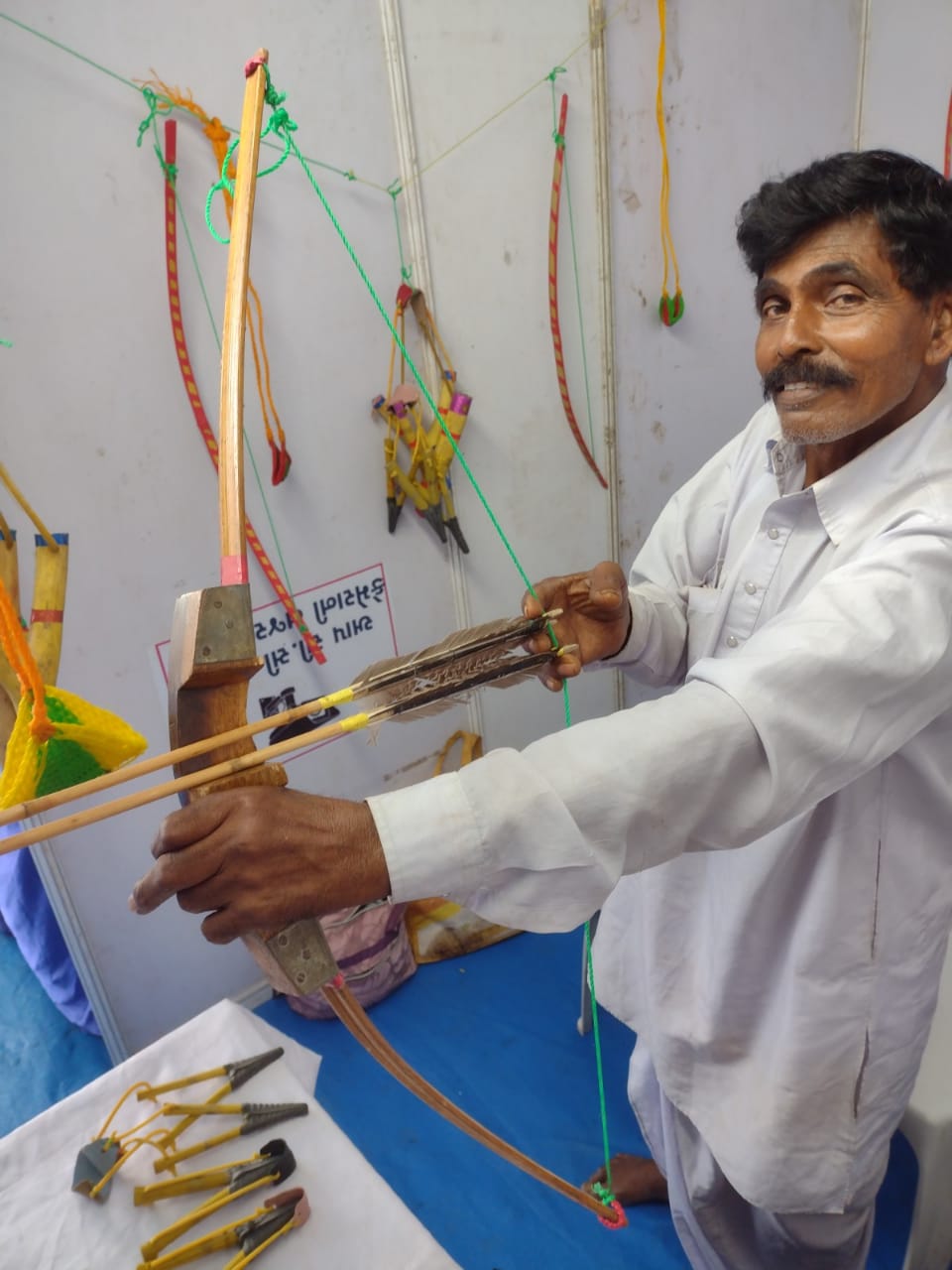 મોટી બાંડીબાર ગામના આ સ્વ સહાય જૂથ દ્વારા તીર કાંમઠા ગોફણ, ટોપલી, ગોરાણી ટોપલી, રોટલી મૂકવાની છાબડી, ફોલ્ડેડ તીરકામઠું, સૂપડા, સાવરણા જેવી વસ્તુઓ જંગલના લાકડામાંથી બનાવવામાં આવે છે એમાં જે હથિયારો છે તેનો નિર્દોષ ઉપયોગ જંગલી જાનવરોની બચવા કરવામાં આવતો હોય છે તેમનું ફોલ્ડેડ તીરકામઠું છે તેમાં એક સાથે ૪-૫ તીર છોડી શકાય છે. તેઓ કહે છે કે આ તમામ વસ્તુઓ તેઓ સંપૂર્ણપણે હાથથી બનાવે છે અને જંગલમાંથી લાકડું લાવી જાતે બનાવે છે આ પ્રકારના સ્વસહાય જુથની તેમણે એક વર્ષ પહેલા એક લાખના રોકાણથી શરૂઆત કરી હતી જે સરકારશ્રીની લોન લઈ આ ગૃહ ઉદ્યોગ સ્થાપ્યો હતો. આમાં મુખ્યત્વે સાગ સીસમ વાસ, રબ્બર, પ્રાકૃતિક કલર વગેરે વસ્તુઓ વાપરવામાં આવે છે. આ જૂથના બહેનો સરકારના આવા મેળામાં દિલ્હી મુંબઈ હૈદરાબાદ સુધી આવી એન્ટીક વસ્તુઓના વેચાણ માટે જઈ આવી છે. લોકો આપણી યુદ્ધ કળા, આપણા જુના ઓજારો આપણી જૂની રમતો ભૂલી ગયા છે. એક માત્ર નાના ગોફણની જ વાત લઈ લો. ખેતરમાં જયારે વાવણી કરી હોય અને પક્ષીઓ અનાજ બગડતા હોય તો ગોફણમાં પત્થર મૂકી ને ગોળ ફેરવીને છુટો ઘા કરવાથી સમસ્યાથી છુટકારો મેળવી શકાય છે. ગીલ્લોર જોઈ લો. આજથી ૨૦-૩૦ વર્ષ પહેલા છોકરાઓ શેરી મહોલ્લામાં જાતે બનાવીને તેનાથી નિશાન તાકતા શીખતા અને સમય પસાર કરતા. આજે છોકરાઓ મોબાઈલમાં જ મશગુલ હોય છે. કલર કરેલા રંગબેરંગી અવનવા તીર-કમઠા, ગીલ્લોર, ગોફણ,ભાલા જેવા ડમી શાસ્ત્રો ખરીદીને આપણે આપણો સંસ્કૃતિક વરસો જાળવી શકીએ, બાળકોને આપણી વિરાસતની ઝાંખી કરાવી શકીએ સાથે સાથે આવા આર્ટીઝનને રોજગારી પણ આપી શકીએ.