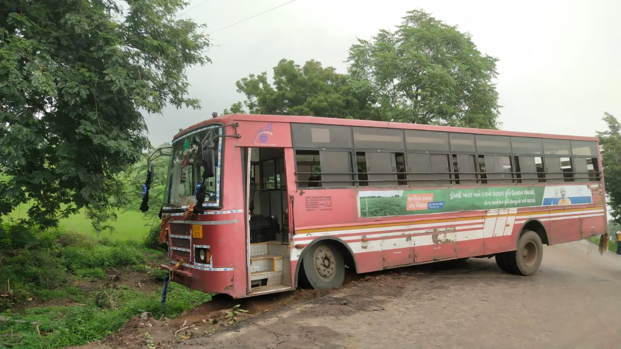ઝાલોદથી ગાંધીનગર જતી એસટી બસ અને સ્વિફ્ટ ગાડી વચ્ચે સર્જાયું અક્સ્માત : મારૂતિ કાર અડફેટે આવતા ખાડામાં ખાબકી