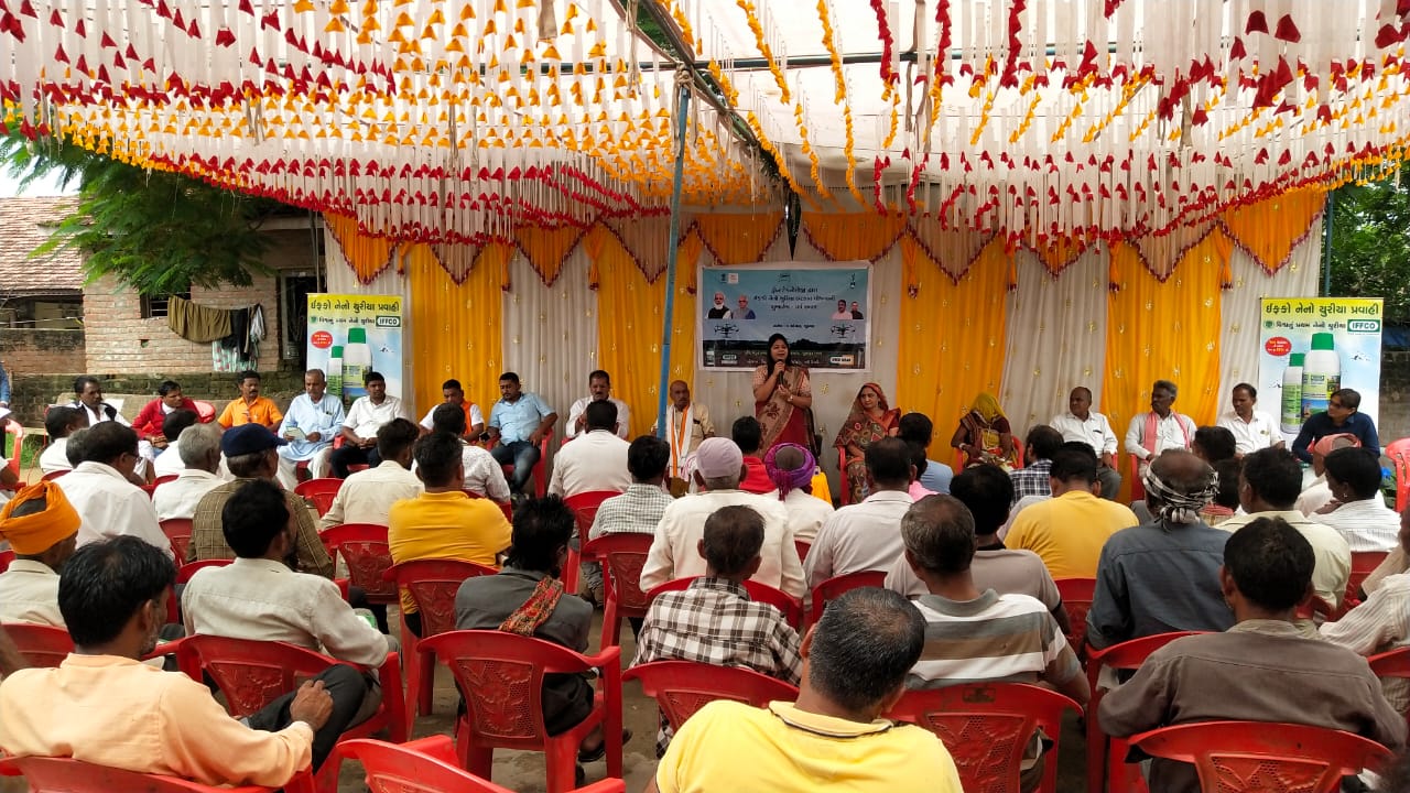 ડ્રોન ટેકનોલોજી (કૃષિ વિમાનના ઉપયોગ) નો લાભ કેવી રીતે અને કેટલો લાભ ખેડૂતો લઈ શકે તેની માહિતી અપાઇ હતી. જેમાં ડ્રોન ટેકનોલોજી યોજના અંતર્ગત ખેડૂતોને ડ્રોનથી છંટકાવ કરવા માટેના રૂ.૬૦૦/- પ્રતિ એકર અને ૫૦૦ મિલી નેનો યુરીયાની બોટલનાં રૂ.૨૪૦/- આમ કુલ રૂ.૮૪૦/- નાં ખર્ચની સામે રૂ.૫૦૦/- પ્રતિ એકર સહાય આપવામાં આવનાર છે.