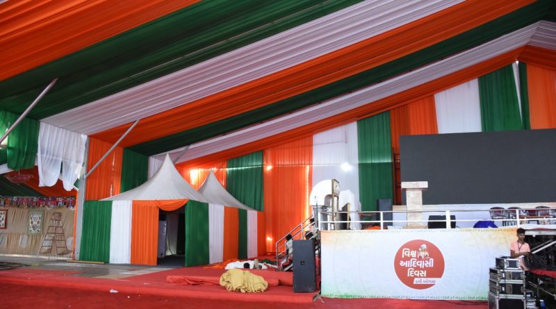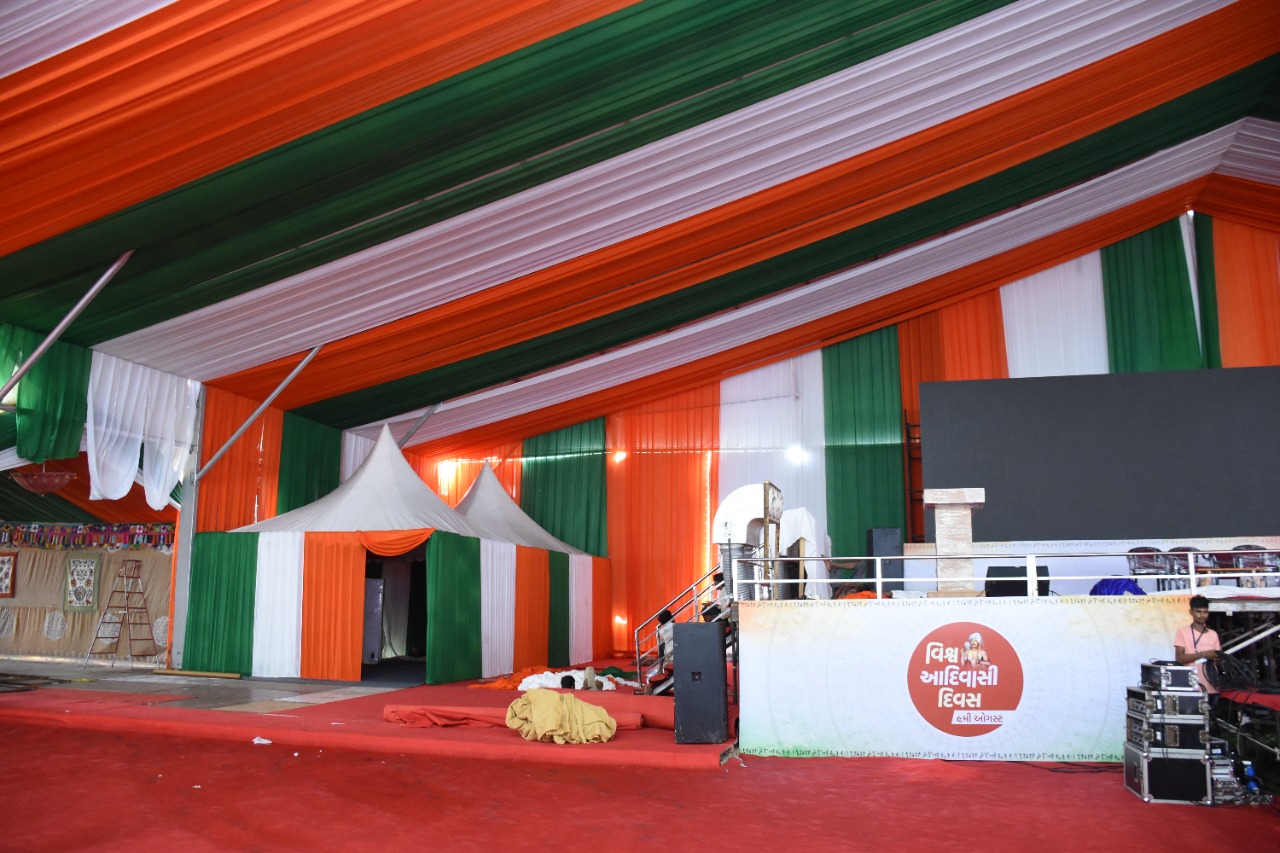 વિશ્વ આદિવાસી દિવસ – રાજ્યકક્ષાની ઉજવણી – દાહોદ : વિશ્વ આદિવાસી દિવસનું ઉજવણી સ્થળ ત્રિરંગાની થીમ સાથે દિપી ઉઠ્યું : ઝાલોદ ખાતેના કાર્યક્રમ સ્થળને આદિવાસી સંસ્કૃતિની ઝલક તેમજ ત્રિરંગાની થીમ સાથે સજાવાયું