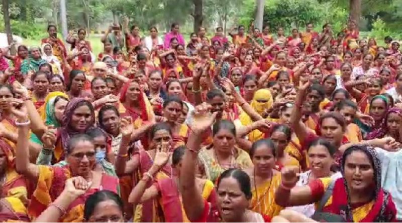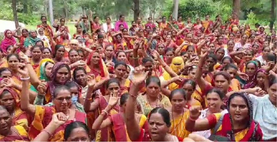દૂધની થેલીઓ રઝળતી મળતી હોય છે અને શાળામાંથી ફેંકી દેવામાં આવે છે : દાહોદ જિલ્લાની આંગણવાડી બહેનો દ્વારા સંજીવની દુધ યોજના બંધ કરવા તેમજ પોતાની વિવિધ માંગણી સંદર્ભે કલેક્ટર કચેરી બહાર વિરોધ દર્શાવ્યો
