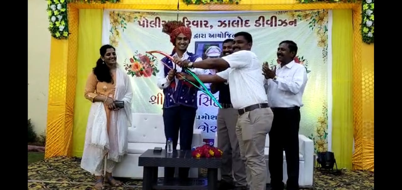 ઝાલોદ ડિવિઝનના પોલિસ પરિવાર દ્વારા એ.એસ.પી વિજયસિંહ ગુજ્જરનુ પ્રમોસન થતાં તેમનો વિદાય સમારંભ પ્રભુતા પાર્ટી પ્લોટ ખાતે રાખવામાં આવ્યો હતો, તેમના બઢતી સાથેના વિદાય સમારંભમાં ઝાલોદ નગરના નાગરિકો, પોલિસ પરિવારના લોકો મોટી સંખ્યામાં જોડાયા હતા,એ.એસ.પી ગુજ્જર પોલિસ પરિવાર દ્વારા સજાવેલ જીપમાં પ્રભુતા પાર્ટી પ્લોટ ખાતે આવ્યા હતા ત્યાં તેમનું સ્વાગત દેશ ભક્તિના ગાન સાથે કરવામાં આવ્યું હતું,તેમના વિદાય સમારંભમાં દરેક પોલિસ પરિવારના લોકો દ્વારા શાલ ઓઢાવી, ભોયરુ પહરાવી, આદિવાસી સંસ્કૃતિની છબી આપી, તીર કામઠા આપી કરવામાં આવ્યું હતું, પોલિસ પરિવાર બાદ તેમનું સન્માન ઉપસ્થિત પત્રકાર મિત્રો, ગ્રામજનો દ્વારા કરવામાં આવ્યું હતું, ત્યાર બાદ ઉપસ્થિત પોલિસ મિત્રો દ્વારા એ.એસ.પી વિજયસિંહ ગુજ્જરના સાથે કરેલ કામગીરીના વખાણ કર્યા હતા,પોલિસ પરિવારના સહુ લોકો એક વાત કહેતા કે ગુજ્જર સાહેબ સદા પોલિસ મિત્રો સાથે ઑફીસર તરીકે નહીં પણ પરિવારના સદસ્ય ની જેમ રહેતા, તેમજ કોઈ પણ સારી કામગીરી માટે તેઓ સદા તત્પર રહેતા હતા, ગુજ્જર સાહેબ દ્વારા ખુબજ ટૂંકા સમયમાં ગ્રામજનો નો પણ વિશ્વાસ જીત્યો હતો, વિજય સિંહ ગુજ્જર ઝાલોદમાં કાયઁકાળ પૂરો થતાં ગદગદ થઈ ગયા હતા અને સહુ પોલિસ મિત્રો અને ગ્રામજનોને એમ કહ્યું કે સદા પોતાના કામ સાથે વફાદારી સાથે આગળ વધજો તેમજ કોઈ પણ સારા કામ માટે માર્ગદર્શન લેવું હોય તો તેઓ સદા તેનાં માટે તૈયાર રહેશે ,ગોહિલ સાહેબ દ્વારા સમગ્ર સ્ટેજ પ્રોગ્રામનુ સુંદર સંચાલન કરવામાં આવ્યું હતું, છેલ્લે પોલીસ પરિવાર દ્વારા પ્રભુતા પાર્ટી પ્લોટ ખાતે ફૂલો ઉછાળી તેમનું સ્વાગત કરવામાં આવ્યું હતું, પ્રભુતા પાર્ટી પ્લોટથી એ.એસ.પી વિજયસિંહ ગુજ્જરને ઘોડા પર બેસાડી પોલિસ સ્ટેશન પર ફટાકડાની આતશબાજી સાથે લઈ જવામાં આવ્યા હતા, છેલ્લે પોલિસ સ્ટેશન ખાતે એ.એસ.પી ગુજ્જર દ્વારા સહુના મળેલ પ્રેમ પ્રત્યે આભાર માનવામાં આવ્યો હતો અને ત્યાર બાદ ઉપસ્થિત સહુ લોકો માટે પોલિસ પરિવાર દ્વારા ભોજનની વ્યવસ્થા કરવામાં આવી હતી. સમગ્ર કાર્યક્રમમાં પ્રાંત અધિકારી, મામલતદાર, સી.પી.આઇ, આજુ બાજુના વિસ્તારના પી.એસ.આઇ તેમજ તેમના પોલિસ પરિવારના સમગ્ર લોકો હાજર રહ્યા હતા