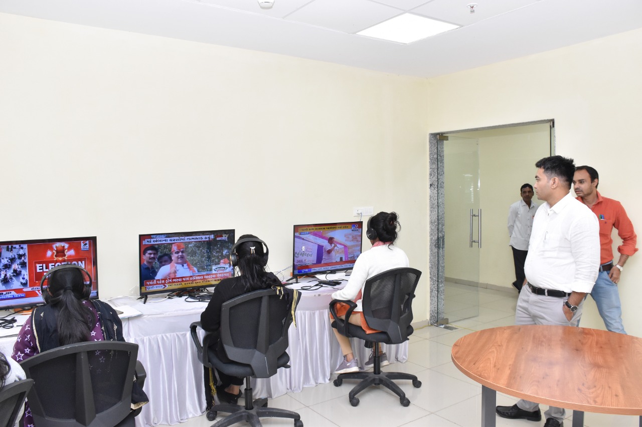 જિલ્લા સેવા સદન ખાતેના મીડિયા મોનિટરિંગ રૂમની મુલાકાત લેતા જિલ્લા ચૂંટણી અધિકારી ડો. હર્ષિત ગોસાવી