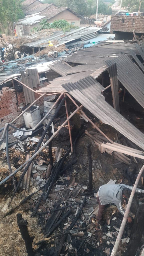 દાહોદ જિલ્લાના ગરબાડા તાલુકાના જાંબુઆ ગામે પશુના તબેલામાં આકસ્મિક આગ લાગી : ૬ મુંગા પશુઓ બળીને ભડથું