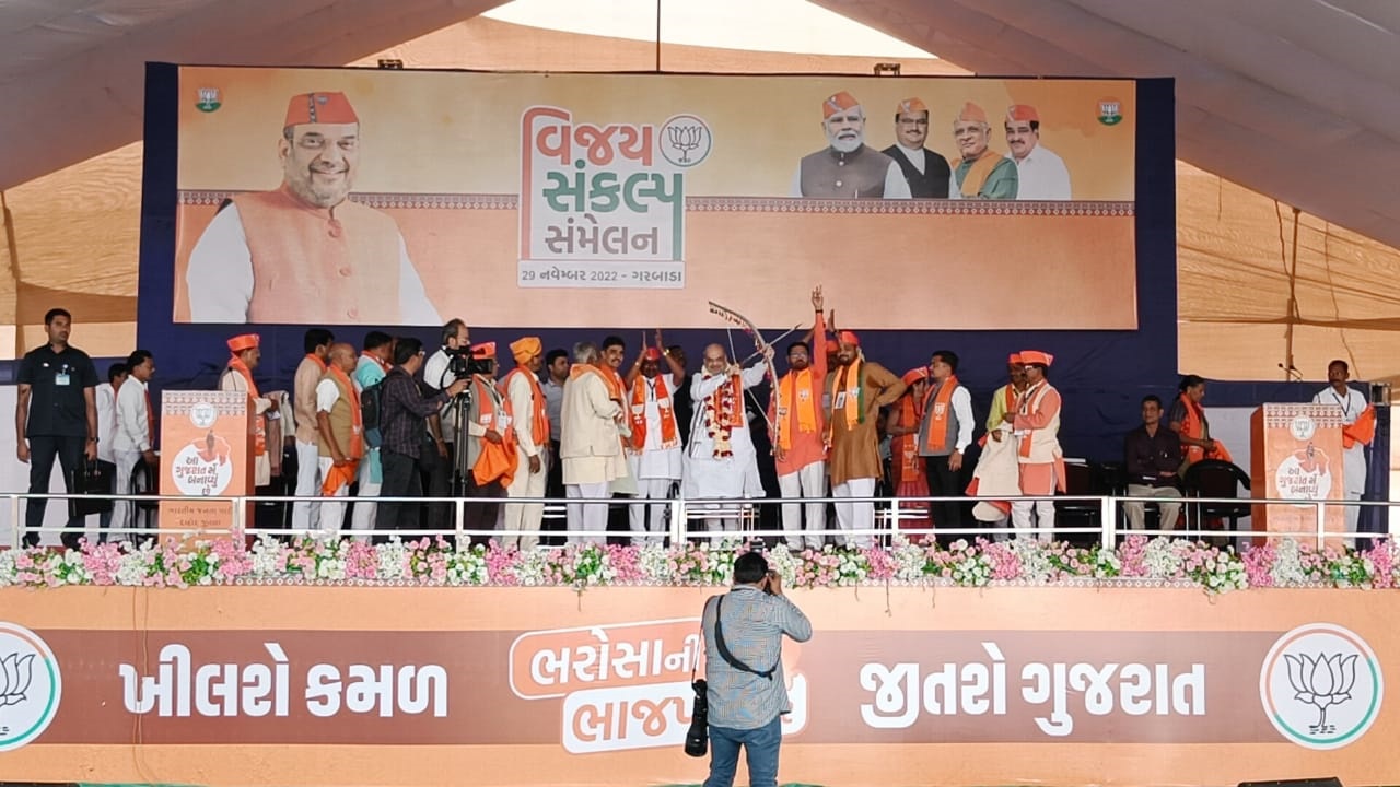 અમિત શાહે ગરબાડામાં જંગી મેદનીને સંબોધન સૌ પ્રથમ ગરબાડાના ભાઈઓ બેહેનોને નમન કર્યું હતું અને જણાવ્યું હતું કે, મોદી સાહેબે આદિવાસીઓની ભલાઈ માટે ઘણી યોજવનાઓ બનાવી છે, મોદી સાહેબે ૨૦૧૪માં વડાપ્રધાન બન્યા ત્યારે તેમણે કહ્યુ ંહતું કે મારી સરકાર આદિવાસીઓની સરકાર છે, મારી સરકાર દલિતોની સરકાર છે. મોદી સાહેબ એજ રસ્તે સરકાર ચલાવી. ભગવાન બિરસામુંડાનો જન્મ દિવસ કાયમ માટે ઉજવાય તે માટે બિરસા મુંડાના જન્મ દિવસના ગૌરવ રૂપે માવવાનામાં આવ્યો છે. ૧૫ નવેમ્બરે બિરસામુંડાજીની જન્મ જયંતિ ઉજવવામાં આવે છે. આદિવાસીઓનું તાલુકાના તાલુકા સન્માન કરવાનું કામ ભાજપે કર્યું છે. આદિવાસીના સ્વાતંત્ર સંગ્રામના સેનાનીઓએ પોતાનું જીવન આઝાદી માટે સમર્પિત કર્યું. ભાજપે ૨૦૦ કરોડ રૂપીયા આદિવાસી સમાજ પાછળ સમાજ પાછળ ખર્યા છે. કોંગ્રેસ જ્યારે રાજ કરતી હતી ત્યારે છેલ્લુ બજેટ આદિવાસીઓ માટે ફાળવતાં હતાં. મોદી સરકાર ૧ લાખ કરોડ રૂપીયા આદિવાસીઓ માટે ફાળવ્યાં, મોદી સરકારે આદિવાસીઓના અધિકાર આપ્યાં, આદિવાસી ગામોમાં વિકાસની શરૂં કરવામાં આવી. વન બંધુ કલ્યાણ યોજના ભાજપે બહાર પાડી. આદિવાસી ક્ષેત્ર, ગામ, આદિવાસી ક્ષેત્ર માટે આ યોજના બનાવી. રોજગાર, શિક્ષા, સ્વાસ્થ્ય, નિસાવ, વીજળી, પાણી ,રસ્તા, સિંચાઈ અને શહેરી વિકાસ ભાજપે કર્યાે છે. ગામે ગામે વીજળી પહોંચી, શાળાઓ ચાલુ થઈ, રોજગારી આપવામાં આવી. નવી આઈટીઆઈ બનાવવામાં આવી, ભાજપે આદિવાસીઓના વિકાસમાં મુળ પાયો નાંખવાની શરૂંઆત કરી. નવી શાળાઓ બનાવી, એક એક આદિવાસીઓને સ્કોલર્શીપ આપવામાં આવી, આદિવાસી ભાઈઓ બહેનોની જમીનો સહદો આપી, અનેક વિકાસના કામો ભાજપે કર્યાં છે.