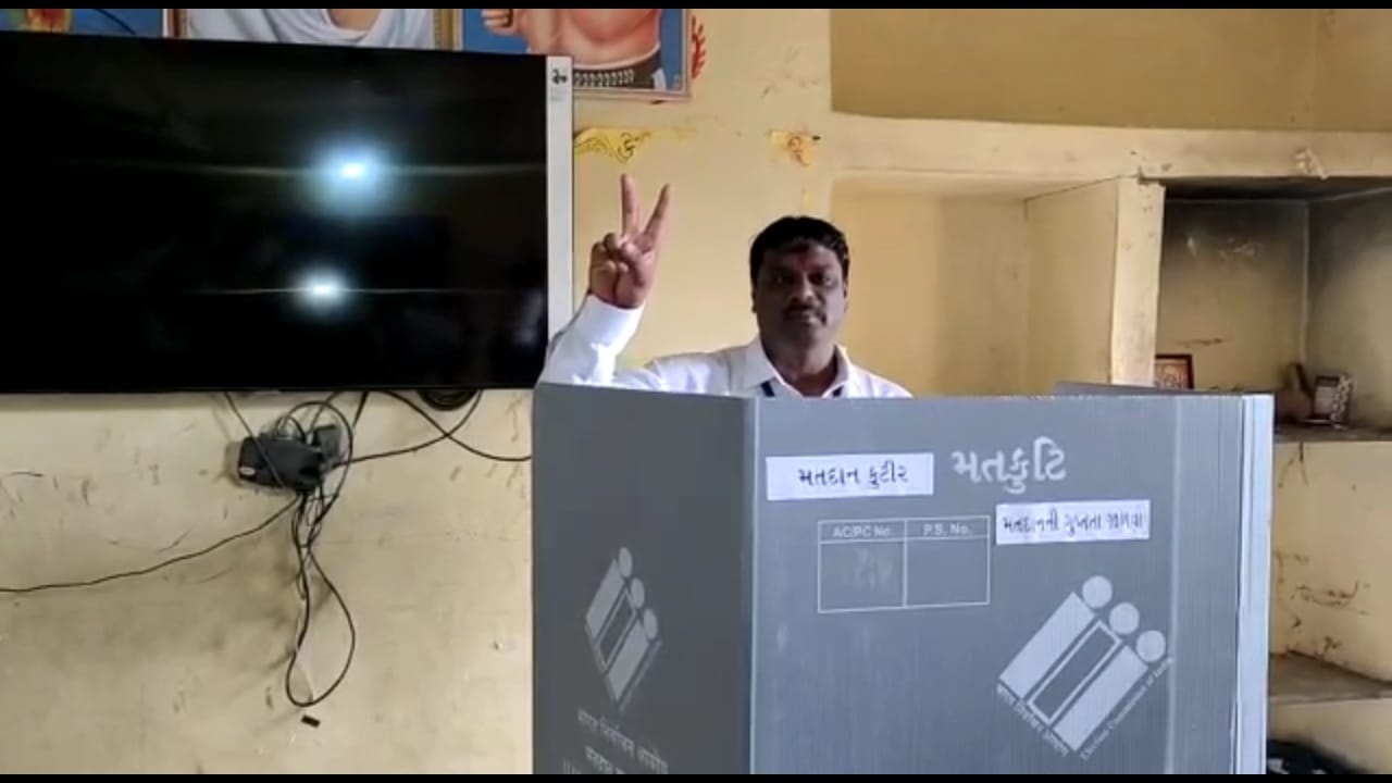 લીમખેડા 131 વિધાનસભા ના ઉમેદવાર શૈલેષભાઈ ભાભોરે તેમના ગામ દાસા મુકામે તેમના પરિવાર જોડે મતદાન કર્યું