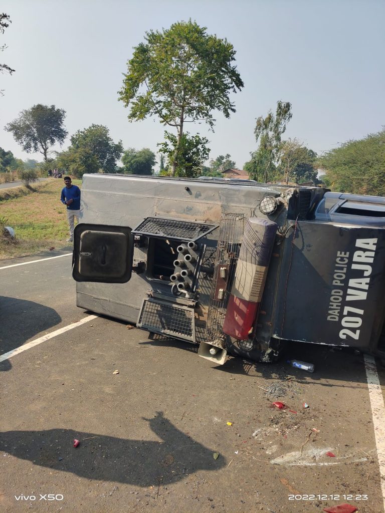હત્યાના આરોપીઓને દાહોદ સબ જેલ માંથી પોલીસ જાપ્તા હેઠળ ફતેપુરા કોર્ટમાં લવાતા વલુંડી ગામે પોલીસ વાન પલટી મારતા 9 ને ઇજા.