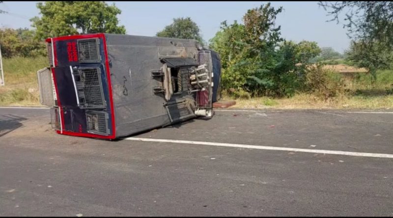 મોટરસાયકલ ચાલકને બચાવવા જતા ચાલકે પોલીસ વાન ઉપરથી કાબુ ગુમાવતા ત્રણ આરોપી સહિત છ પોલીસ કર્મીઓને ઈજા.