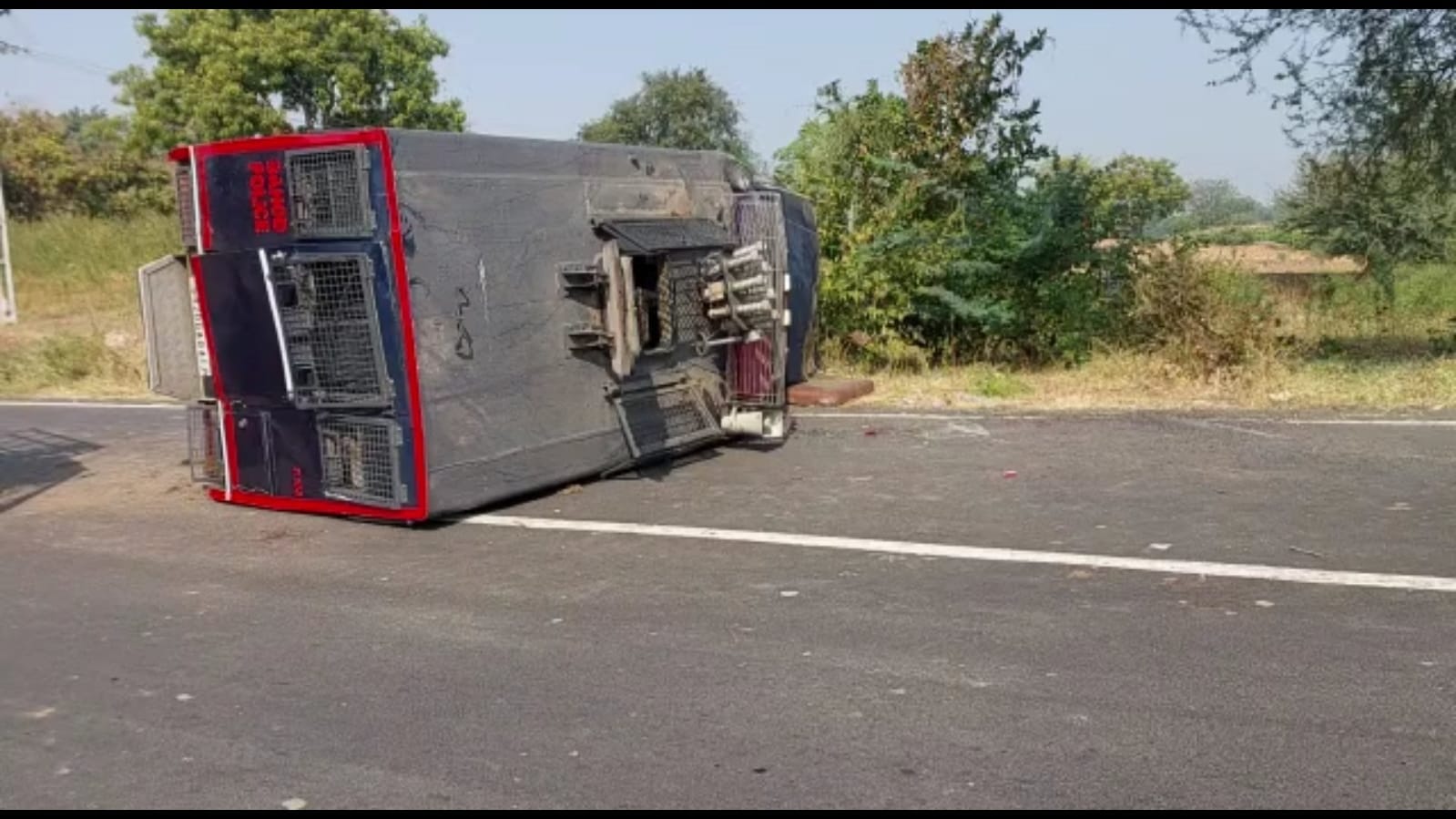 મોટરસાયકલ ચાલકને બચાવવા જતા ચાલકે પોલીસ વાન ઉપરથી કાબુ ગુમાવતા ત્રણ આરોપી સહિત છ પોલીસ કર્મીઓને ઈજા.