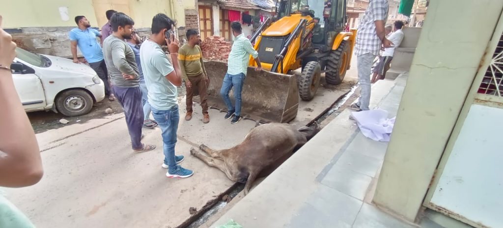 સંજેલી નગરમાં તારીખ 15-12-2022 ના રોજ કોઈ બસના અડફેટે આવી એક નાના વાછરડાનું અકસ્માત થયું હતું. સંજેલી નગરના સામાજિક કાર્યકર્તાઓને વાતની જાણકારી મળતા ઘટના સ્થળે પહોંચી ગયેલ હતા .ત્યાં પહોંચતા તપાસ કરતા વાછરડું મૃત હાલતમાં મળી આવેલ હતું .ત્યાર બાદ સહુ સામાજિક કાર્યકર્તાઓ દ્વારા વાછરડાના માલિકની તપાસ કરતા માલુમ પડેલ ન હતું. ત્યાર બાદ સહુ કાર્યકર્તાઓ ભેગા થઈ એક ખુલ્લી ખુલ્લી જગ્યામાં જઈ જે.સી.બી થી ખાડો ખોડી તે ખાડામાં વાછરડાને દફનાવી દેવામાં આવેલ હતું.
