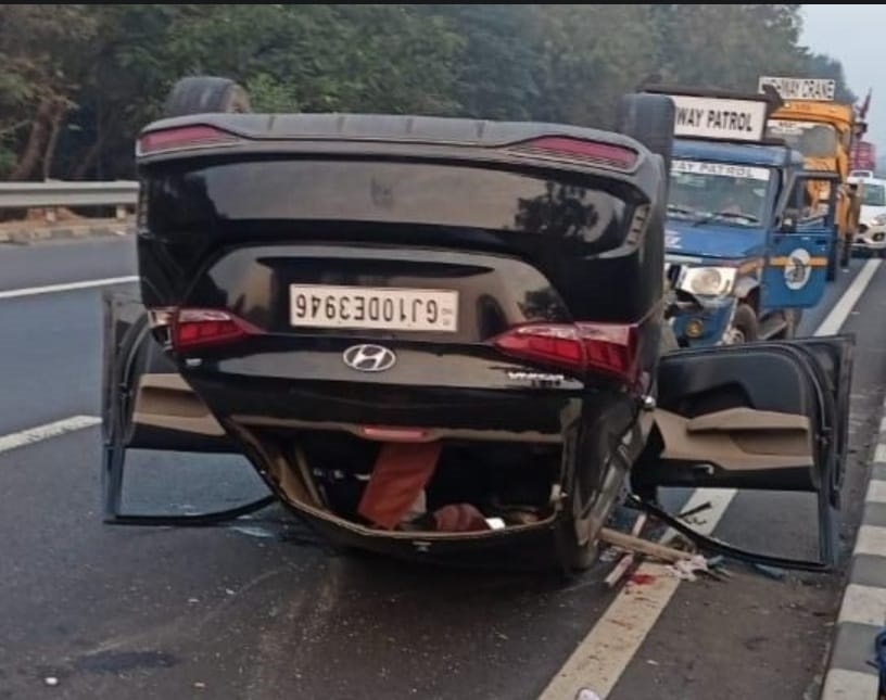 અમદાવાદ-વડોદરા એક્સપ્રેસ હાઈવે પર ટાયર ફાટતાં અકસ્માત, એક નું મોત.