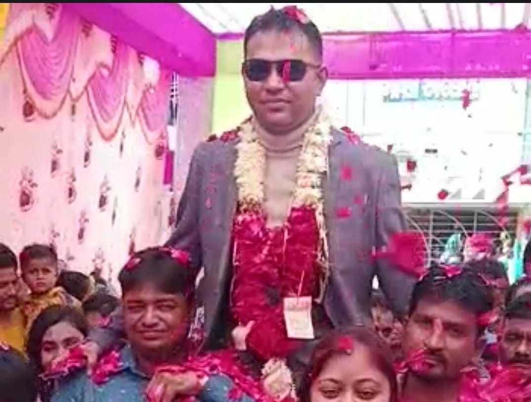 હતા.અને ત્યાંથી હેલીકોપ્ટરમાં બેસી આ યુવાન અને તેના પરિવાર સાથે પોતાના વતન કઠલાલ ખાતે આવી પહોંચ્યા છે. આશિકના પિતાએ પણ આવી એન્ટ્રીમાં કોઈ કચાસ ન રહે તેથી બેન્ડવાજા સાથે હરખભેર પોતાના દિકરાનું ભવ્ય સ્વાગત કર્યું હતું. એ પછી ઘર સુધી બેન્ડવાજાની સાથે તેડી લાવ્યા હતા. દિકરા, પુત્રવધુ અને પૌત્રનુ ભારે હૈયે ભીખાભાઈ દિવાન અને તેમના કૌટુંબિક લોકોએ સ્વાગત કર્યું હતું. લાંબા સમય બાદ પુત્ર, પુત્રવધુ અને પૌત્ર આવતાં દિવાન પરિવારમાં આનંદનો માહોલ સર્જાયો છે.