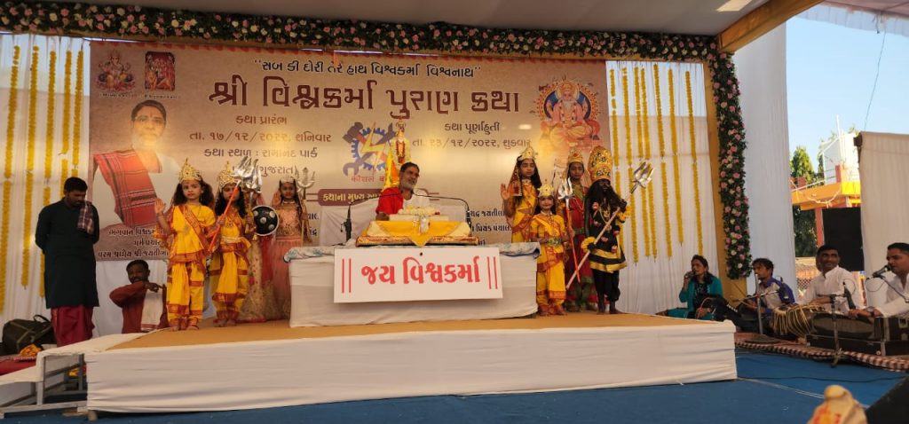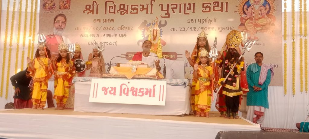 દાહોદ ના રામાનંદ પાર્ક મા છેલ્લા 4 દિવસ થી સુર્ષ્ટી ના રચયિતા ભગવાન વિશ્ર્વકર્મા પુરાણ કથા નુ રસપાન જયંતીભાઈ શાસ્ત્રી ના સ્વમુખે થઈ રહ્યુ છે .ત્યારે શ્રી વિશ્ર્વકર્મા પુરાણ કથા 4 દિવસ ના અંતે ભગવાન વિશ્ર્વકર્મા ના પુત્રી મા રાંદલ નુ પ્રાગટ્ય દીન ની ઉજવણી કરવામા આવી હતી .જેમા મા શાસ્ત્રીજી એ મા રાંદલ પ્રાગટ્ય ની ઉજવણી નો મહિમા સમજાવ્યો હતો .જેમા સમાજ ની નાની નાની બાળા ઓ દ્વારા મા માતાજી ના નવ સ્વરૂપ ધારણ કર્યા હતા .તેમજ ભગવાન વિશ્ર્વકર્મા અને તેમના પુત્રી રાંદલ અને છાયા ના પણ પાત્ર ભજવવા મા આવ્યા હતા .મા રાંદલ ના પ્રાગટ્ય દીન નીમીતે મહીલા મંડળો ગરબે ઝુમ્યા હતા