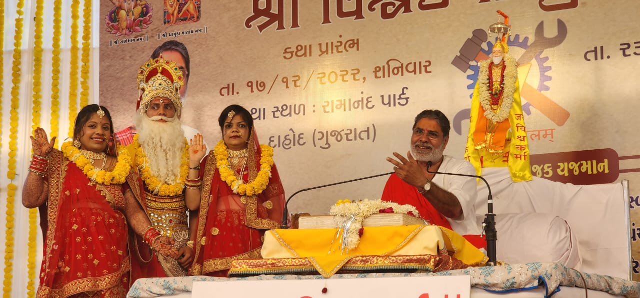 દાહોદ ના રામાનંદ પાર્ક મા છેલ્લા 4 દિવસ થી સુર્ષ્ટી ના રચયિતા ભગવાન વિશ્ર્વકર્મા પુરાણ કથા નુ રસપાન જયંતીભાઈ શાસ્ત્રી ના સ્વમુખે થઈ રહ્યુ છે .ત્યારે શ્રી વિશ્ર્વકર્મા પુરાણ કથા 4 દિવસ ના અંતે ભગવાન વિશ્ર્વકર્મા ના પુત્રી મા રાંદલ નુ પ્રાગટ્ય દીન ની ઉજવણી કરવામા આવી હતી .જેમા મા શાસ્ત્રીજી એ મા રાંદલ પ્રાગટ્ય ની ઉજવણી નો મહિમા સમજાવ્યો હતો .જેમા સમાજ ની નાની નાની બાળા ઓ દ્વારા મા માતાજી ના નવ સ્વરૂપ ધારણ કર્યા હતા .તેમજ ભગવાન વિશ્ર્વકર્મા અને તેમના પુત્રી રાંદલ અને છાયા ના પણ પાત્ર ભજવવા મા આવ્યા હતા .મા રાંદલ ના પ્રાગટ્ય દીન નીમીતે મહીલા મંડળો ગરબે ઝુમ્યા હતા