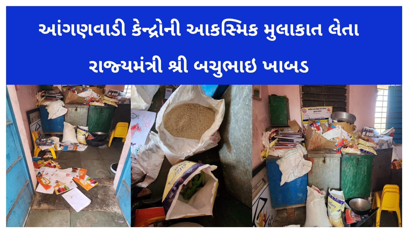 પંચાયત કૃષિ વિભાગના રાજ્ય કક્ષાના મંત્રી શ્રી બચુભાઈ ખાબડે ગત તા. ૨૪ ના રોજ દેવગઢ બારીયા તાલુકાના ઘટક-૩ ના કેળકુવા માજી સરપંચ ફળિયા આંગણવાડી કેન્દ્રની આકસ્મિક મુલાકાત લીધી હતી. જેમાં મુલાકાત દરમ્યાન ઘણી બધી ગંભીર ક્ષતીઓ જોવા મળી હતી. આંગણવાડી કાર્યકર તેડાગર બંને ગેરહાજર હતા. તેમજ ચાર દિવસથી એક પણ બાળક કેન્દ્ર પર આવેલ નથી તથા મુલકાત દરમ્યાન બે બાળકો જ હાજર જોવા મળ્યા હતા અને બાળકો માટે નાસ્તો પણ બનાવાયો નહોતો.