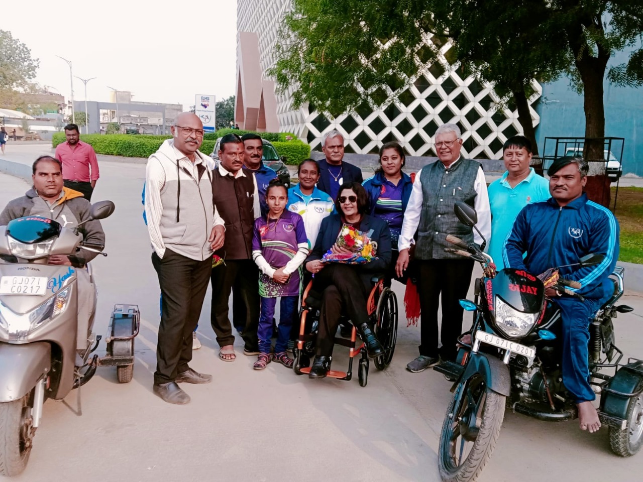 આ પ્રસંગે રમતગમત અધિકારી ડો. મનસુખભાઈ તાવેથીયા, પેરા સ્પોર્ટ્સ એસોશિએશન ઓફ ગુજરાતના પ્રેસિડેન્ટ કાંતિભાઈ પરમાર, પેરા સ્પોર્ટ્સ એસોશિએશન ઓફ ગુજરાતના સેક્રેટરી ચંદુભાઈ ભાટી, પેરા ડિસ્ટ્રીક્ટ કોચ શ્રી ગૈરવભાઈ તેમજ જગદીશભાઇ ઠાકોર, ફીઝીકલ હેન્ડીકેપડ સોસાયટીના રાકેશ ચાવડા તથા સભ્યો હાજર રહ્યા હતા.