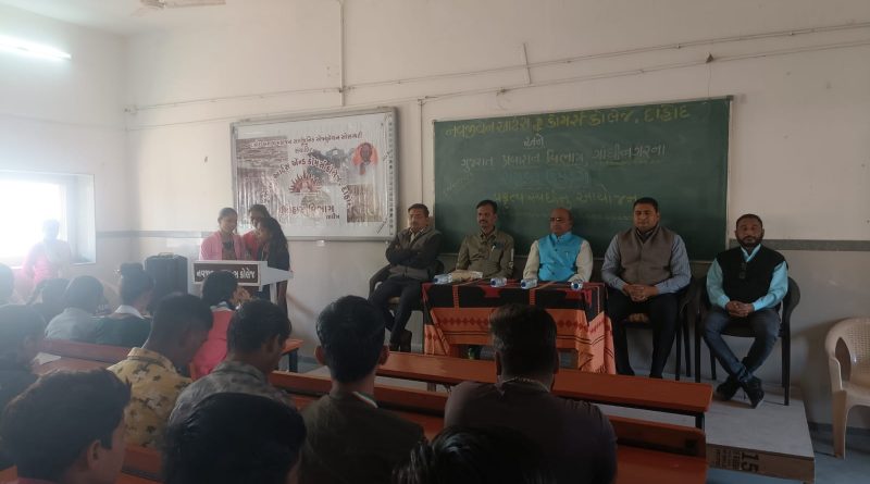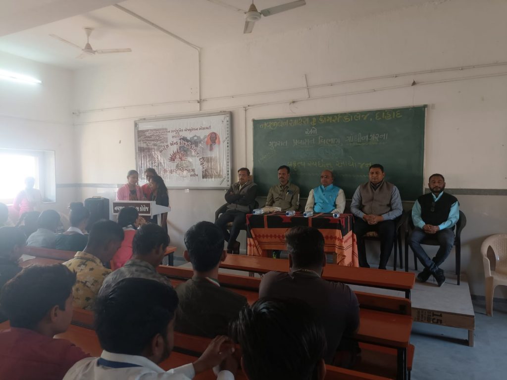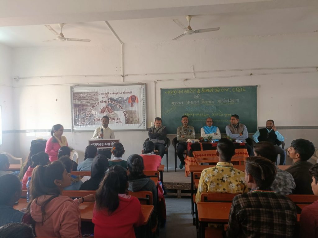 ગુજરાત પ્રવાસન વિભાગ, ગાંધીનગર અને નવજીવન આર્ટ્સ એન્ડ કોમર્સ કોલેજ દાહોદના સંયુક્ત ઉપક્રમે તા.૧૦/૦૨/૨૦૨૩ શુક્રવારના રોજ વકૃત્વ સ્પર્ધાનું આયોજન અત્રેની કોલેજના આચાર્ય શ્રી ડૉ. બી. સી. ચૌધરી સાહેબના માર્ગદર્શન હેઠળ કરવામાં આવ્યું હતું. જેમાં ગરબાડા કોલેજના અધ્યાપક પ્રો. યોગેશચંદ્ર ડામોર અને યુવા સાહિત્યકાર ડૉ. ભરત ખેની તથા શ્રી ગોવિંદ ગુરુ યુનિવર્સિટીના ઈ.સી. મેમ્બર પ્રો. ગૌતમ સંગાડા સાહેબ અધ્યક્ષસ્થાને હાજર રહ્યાં હતા. ઈતિહાસ વિભાગના અધ્યક્ષ ડૉ. દિનેશ મુનિયા સાહેબે કાર્યક્રમનું ઉદ્ બોધન કર્યું હતું. સ્પર્ધાનું સંચાલન ડૉ.રાજેશ ભાભોરે કર્યું હતું.અને આભાર વિધિ પ્રો. વરૂણ ડામોરે કરી હતી. કાર્યક્રમમાં તમામ અધ્યાપક ગણ હાજર રહ્યા હતા. સ્પર્ધામાં ૫૧ જેટલા વિદ્યાર્થી મિત્રોએ ભાગ લીધો હતો. વકૃત્વ સ્પર્ધામાં પ્રથમ સ્થાન બારીયા બાદલ દ્વિતીય સ્થાન કોળી ક્રિષ્ના અને તૃતીય સ્થાન રાઠોડ હિમાંશી અને કોમળ નરેશએ મેળવ્યું હતું. સ્પર્ધાના અંતે ગુજરાત પ્રવાસન વિભાગ તરફથી વિદ્યાર્થીઓને કીટનું વિતરણ કરવામા આવ્યું હતું.