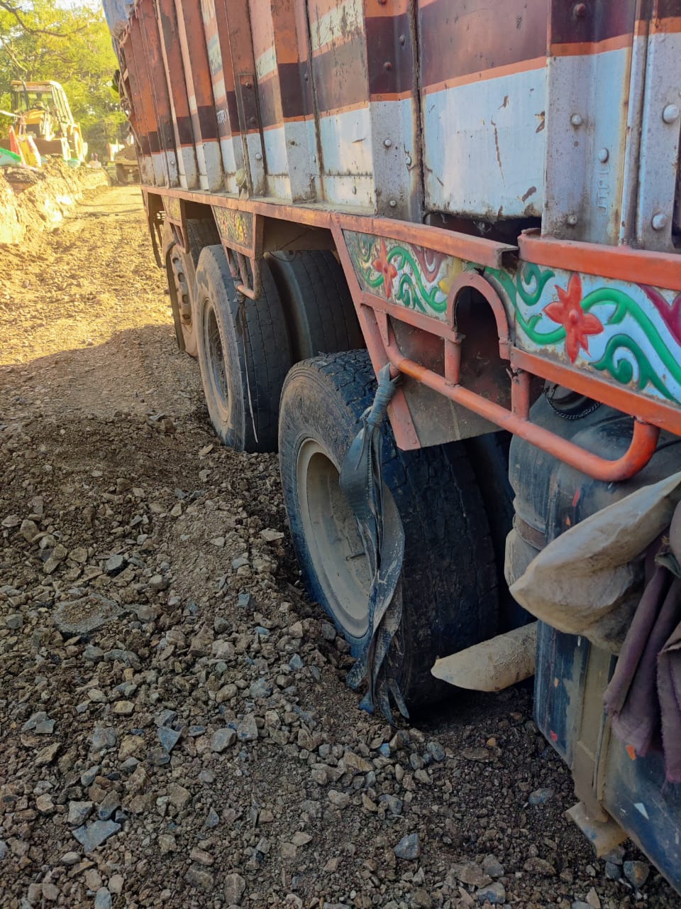 ગરબાડા દાહોદ અલીરાજપુર હાઇવે પર નવાફળિયા ચોકડી નજીક લોડીંગ વાહન ફસાયું