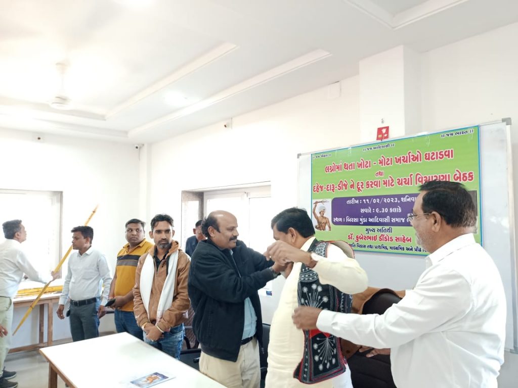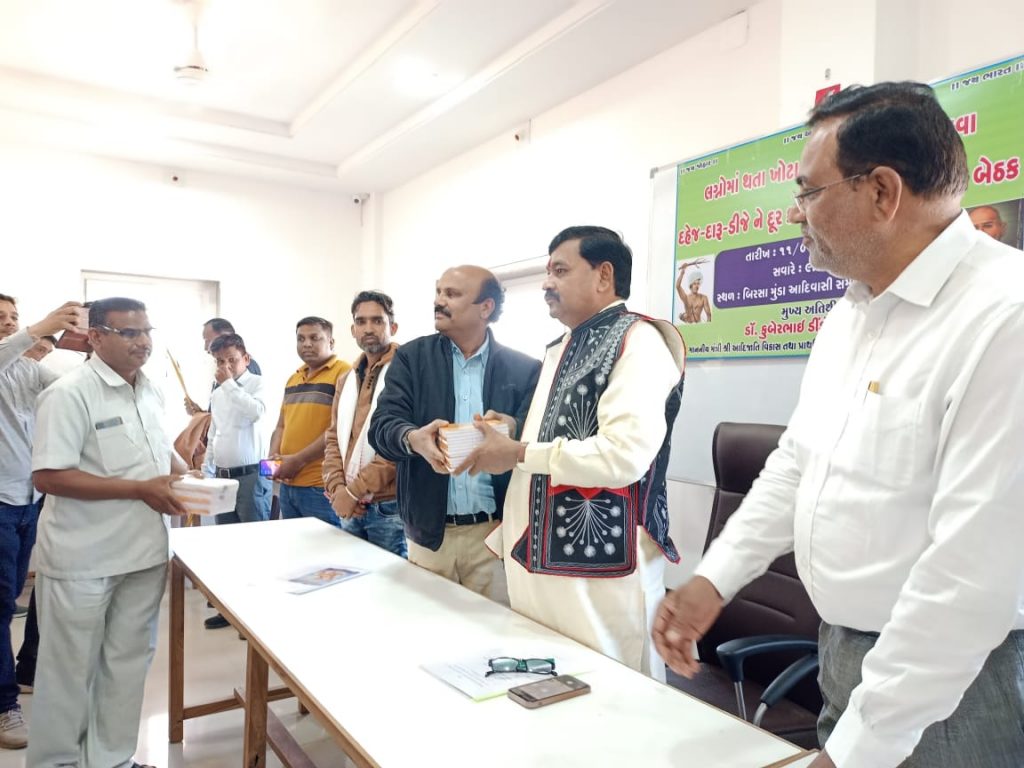 દાહોદ, પંચમહાલ અને મહીસાગર જીલ્લા ના ભીલ આદિવાસી સમાજ ના લગ્નો માં થતા ખોટા મોટા ખર્ચાઓ ને રોકવા તથા દહેજ – દારુ- ડીજે ને દૂર કરવા માટે ના અભિયાન અંતર્ગત ગુજરાત સરકાર ના માનનીય મંત્રી શ્રી (આદિજાતિ વિકાસ તથા પ્રાથમિક, માધ્યમિક અને પ્રૌઢ શિક્ષણ) ડો. કુબેર ભાઈ ડીંડોડ સાહેબે આજ રોજ સવારે સમાજ ના આગેવાનો સાથે બિરસા મુંડા આદિવાસી સમાજ ભવન દાહોદ ખાતે ચર્ચા વિચારણા બેઠક માં હાજરી આપી હતી.
