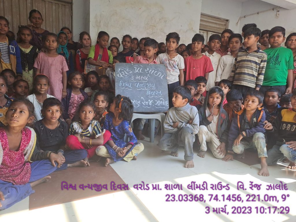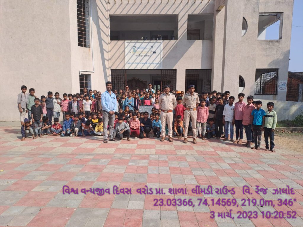 આજ રોજ વરોડ પ્રાથમિક શાળામાં વિસ્તરણ રેન્જ ઝાલોદના બીટગાડ એમ સી મકવાણા અને કે એમ બેદી હાજર રહી વિદ્યાર્થીઓને વન્યજીવો વિશે માહિતી આપવામાં આવી.શાળાના શિક્ષક અલ્કેશ વૈરાગી દ્વારા વન્યજીવ દિવસ કેમ ઉજવાય છે તે વિશે વાત કરવામાં આવી આપણે વન્યજીવોની રક્ષા માટે હંમેશા તત્પર રહેવું જોઈએ પર્યાવરણ વિશે જાગૃત બની પર્યાવરણનું રક્ષણ કરવું જોઈએ. વન્યપ્રાણી પ્રત્યે જાગૃતિ ફેલાવવા દર વર્ષે 3 માર્ચને વન્યજીવન દિવસ તરીકે ઉજવવામાં આવે છે. વન્યપ્રાણી પ્રત્યે જાગૃતિ ફેલાવવા દર વર્ષે 3 માર્ચને વન્યજીવન દિવસ તરીકે ઉજવવામાં આવે છે. ખાદ્યપદાર્થો અને દવાઓ ઉપરાંત, આપણને વન્યજીવનથી ઘણા ફાયદા મળે છે. આ ઉપરાંત વન્યજીવો પણ આબોહવાને સંતુલિત રાખવામાં મદદ કરે છે. વિશ્વભરમાં વનસ્પતિ અને પ્રાણીસૃષ્ટિની લુપ્ત થતી પ્રજાતિઓ વિશે જાગૃતિ ફેલાવવા માટે દર વર્ષે 3જી માર્ચે વિશ્વ વન્યજીવન દિવસ ઉજવવામાં આવે છે. 3 માર્ચ 2014ના રોજ પ્રથમ વખત વિશ્વ વન્યજીવ દિવસની ઉજવણી કરવામાં આવી હતી. આખી દુનિયામાં પ્રાણીઓ અને છોડની ઘણી પ્રજાતિઓ ધીમે ધીમે અદૃશ્ય થઈ રહી છે. હાલમાં ભારતમાં પ્રાણીઓની 900 થી વધુ પ્રજાતિઓ જોખમમાં છે. જો સમયસર તેની કાળજી લેવામાં નહીં આવે તો પરિસ્થિતિ વધુ ખતરનાક બની શકે છે. વિશ્વ વન્યજીવન દિવસની શરૂઆત કેવી રીતે થઈ?