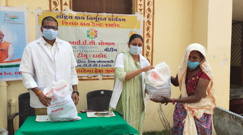 પ્રધાનમંત્રીશ્રીના ટીબી મુક્ત ભારત અભિયાન અંતર્ગત ગત રોજ દાહોદ તાલુકાના પ્રાથમિક આરોગ્ય કેન્દ્ર- મોટી ખરજ ખાતે જીલ્લા રક્તપિત્ત અધિકારી(ઈન્ચાર્જ/જીલ્લા ક્ષય અધિકારી) ડૉ. આર.ડી.પહાડીયા અને તાલુકા હેલ્થ ઓફિસર ડો. ભગીરથ બામણીયાના માર્ગદર્શન હેઠળ ટી.બી. પોષણ સહાય કીટ વિતરણ કાર્યક્રમ તથા પેશન્ટોની વચ્ચે ગ્રુપ મીટીંગ કરવામાં આવી હતી. આ મીટીંગમાં કુલ ૨૩ ટી.બી.ના દર્દીઓ હાજર રહેલ હતા તથા ૨૩ ડોટ્સ પ્રોવાઇડર હાજર રહેલ હતા. આ કાર્યક્રમમાં મેડિકલ ઓફિસર ડૉ અનીલ ડાભી , ડૉ હેતલ, આરોગ્ય કેન્દ્રના સુપરવાઈઝર, આરોગ્ય સ્ટાફ હાજર રહેલ હતો. આ કાર્યક્રમમાં ડો.અનીલ તથા ડો. હેતલ દ્વારા દર્દીઓને દવા નિયમિત લેવાની, સમય સર ગળફાની તપાસ કરાવવી, દવાની આડઅસર વિષે સમજાવવામાં આવ્યું હતું. સારવાર દરમ્યાન શું શું ખોરાક લેવો તેનાં વિશે માહીતિ આપવામાં આવી, ગુજરાત સરકાર ની વૈદકીય સહાય યોજના વિશે માહીતિ આપવામાં આવી, દર્દીના ઘરના અન્ય સભ્યો ને એક દિવસની પણ ખાસી આવતી હોય તો તાત્કાલિક તપાસ કરવા માટે પણ કહેવામાં આવ્યું , દર્દીના ઘરમાં 0-6 વર્ષનું બાળક સાથે રહેતું હોય તો તેને પણ આઇ.એન. એચ નામની દવા બાળક ના વજન પ્રમાણે કુલ 06મહીના સુધી બાળક ને આપવાની થાય છે જેથી કરીને બાળક ને ટીબી નો ચેપ ન લાગે,દર્દીએ ખાસી ખાતી વખતે મોં ઉપર રૂમાલ અવશ્ય રાખવો ડોટ્સ પ્રોવાઈડર ને કોઈ તકલીફ હોય તો તેનું પણ નિરાકરણ કરવામાં આવ્યું. જો ટીબીનો દર્દી ગળફામાં ટીબીના જંતુ ધરાવતો ટીબી સાથે સારવાર લેતો હોય તો તેના ઘર ના અન્ય સભ્યો ને ૩ આર એચ નામની ટેબલેટ ૩ મહીના સુધી લેવા માટે સમજાવવામાં આવ્યુ હતું. જેથી કરી ને ઘર ના અન્ય સભ્યોને પણ ટીબી નો ચેપ ન લાગે તેવી સલાહ આપવામાં આવી હતી. પ્રાથમિક આરોગ્ય કેન્દ્ર મોટીખરજના સ્ટાફ દ્વારા દર્દીઓને કીટ આપવામાં આવી હતી.