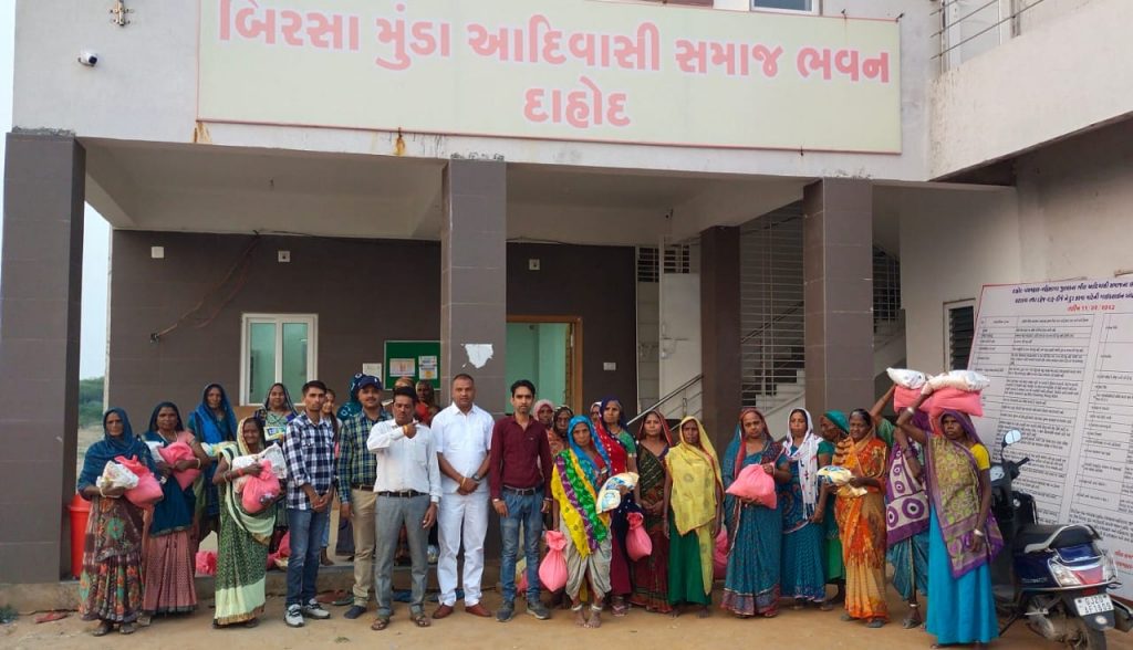 બિરસામુંડા સમાજ ભવન ખાતે ભાઈ વિરેન્દ્રભાઈ ભાભોર દ્વારા પોતાના જન્મદિન નિમિતે આજ રોજ ગામના નિરાધાર અને વિધવા માતા-બહેનોને હોળીના ફસલી તહેવાર નિમિતે રાશન કીટ અને ખજૂર આપી એમના જન્મદિવસની ઉજવણી કરી.