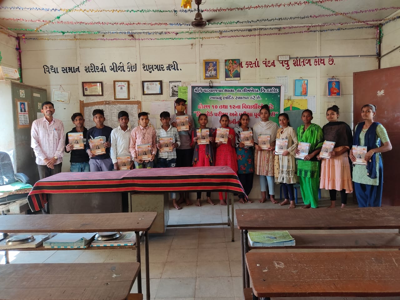 આજરોજ લીમખેડા તાલુકા ની પટવાણ પ્રાથમિક શાળામાં ધોરણ – 10 – 12 નાં વિદ્યાર્થીઓ માટે માર્ગદર્શન સેમીનારનું આયોજન કરવામાં આવ્યું. માર્ગદર્શન સેમીનારમાં ગામમાંથી હાલમાં જે વિદ્યાર્થીઓ બોર્ડની પરીક્ષા આપવાના છે તેવા 15 જેટલા ભાઈ બહેનો હાજર રહ્યા હતા.બોર્ડના વિદ્યાર્થીઓને પરીક્ષા સંદર્ભે યોગ્ય માર્ગદર્શન માટે મેહુલભાઈ ચૌધરી,એસ.એમ.સી. શિક્ષણવિદ્ શ્રી શનુભાઈ ભુરીયા,શાળાનાં આચાર્યશ્રી નિલેશભાઈ પ્રજાપતિ દ્વારા વિવિધ ઉદાહરણોના માધ્યમથી યોગ્ય માર્ગદર્શન પૂરું પાડ્યું હતું. પધારેલ સૌ વિદ્યાર્થીઓને શાળાનાં શિક્ષકશ્રી ફતેસિંહ એસ બારીઆ દ્વારા એસાઈમેન્ટ તથા બોલપેનો આપવામાં આવી હતી. સાથે – સાથે શાળા પરિવાર તથા આમંત્રિત મહેમાનો દ્વારા બોર્ડની પરીક્ષા આપનાર સૌ વિદ્યાર્થીઓને ખૂબ જ સારી સફળતા પ્રાપ્ત કરે તે માટે હાર્દિક શુભેચ્છાઓ પાઠવવામાં આવી હતી. સમગ્ર માર્ગદર્શન સેમીનારનું આયોજન શાળા પરિવાર પટવાણના સહયોગથી તથા સી.આર.સી.કો.ઓર્ડીનેટર શ્રી મેહુલભાઈ ચૌધરીના માર્ગદર્શન હેઠળ શાળાનાં શિક્ષક શ્રી ફતેસિંહ એસ બારીઆ દ્વારા કરવામાં આવ્યું હતું