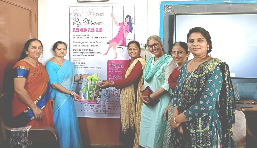ધર્મસિંહ દેસાઇ યુનિવર્સિટીની ફાર્મસી ફેકલ્ટી, યુનિવર્સિટી વુમન સેલ અને ડો. એન. ડી. દેસાઈ મેડિકલ કોલેજ દ્વારા આંતરરાષ્ટ્રીય મહિલા દિવસ ની ઉજવણી તારીખ ૧૦ માર્ચ ના દિવસે એસોસિએશન ઓફ ફાર્માસ્યુટિકલ ટીચર્સ ઓફ ઇન્ડિયા ના સહયોગથી અમદાવાદી બજારમાં આવેલી નગરપાલિકાની સ્કૂલ નંબર-૬ માં કરવામાં આવી જેમાં ૫૦ વિદ્યાર્થીનીઓ એ ભાગ