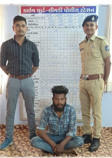 જેના અનુસંધાને લીમડી પો.સ.ઇ. શ્રી એમ.એફ.ડામોર નાઓએ એક્શનમાં આવીને નાસતા-ફરતા આરોપીઓને પકડવા સારૂ અલગ- અલગ ટીમો બનાવી લીમડી પો.સ્ટે. સ્ટાફના અ.પો.કો. પ્રદીપભાઇ નટુભાઇ તથા આ.પો.કો. મહેશભાઇ અશોકભાઇ તથા અ.પો.કો. ધનંજયભાઇ સમુભાઇ નાઓ સાથે લીમડી પો.સ્ટે. વિસ્તારમાં પેટ્રોલીંગ દરમ્યાન | સચોટ બાતમી મેળવીને લીમડી પો.સ્ટે. પાર્ટ- સી ગુ.ર.નં. ૧૧૮૨૧૦૩૩૨૨૦૨૦૫/૨૦૨૨ મુજબના પ્રોહીબિશનના ગુન્હામાં નાસતા-ફરતા આરોપી ગિરીશભાઇ રૂપસીંગભાઇ ડામોર, ઉ.વ.૨૩, રહે.કારઠ, ખરસોડ, દૂધતળા તા.ઝાલોદ, જી.દાહોદ નાને તેના ઘરેથી ઝડપી પાડી તેના નામ-ઠામની ખરાઇ-ખાતરી કર્યા બાદ કાયદેસરના કાર્યવાહી કરવામાં આવેલ છે આમ, લીમડી પોલીસને પ્રોહિબિશનના ગુન્હાના છેલ્લા ૧૦ મહિનાથી નાસતા-ફરતા આરોપીને ઝડપીપાડવામાં સફળતા મળેલ છે.