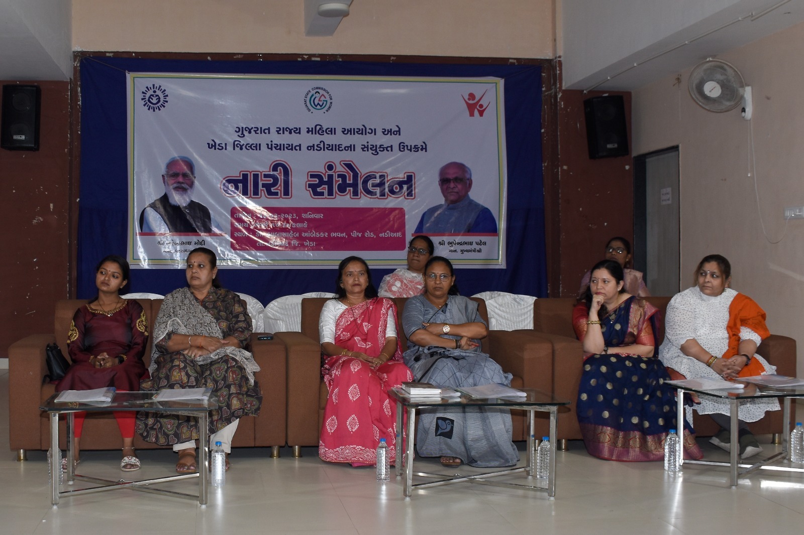 નડિયાદ: ખેડા જિલ્લામાં ડો. બાબાસાહેબ આંબેડકર ભવન પીજ રોજ નડિયાદ ખાતે નડિયાદ નગરપાલિકા પ્રમુખ રંજનબેન વાઘેલાની અધ્યક્ષતામાં નારી અદાલતોના કાર્યો, હેતુ, કાર્યપધ્ધતિ અને મહિલાઓના હક્કની જાણકારી માટે ગુજરાત રાજ્ય મહિલા આયોગ અને ખેડા જિલ્લા પંચાયત નડિયાદના સંયુક્ત ઉપક્રમે નડિયાદ તાલુકાનો “નારી સંમેલન” કાર્યક્રમ યોજાયો હતો. કાર્યક્રમમાં નડિયાદ નગરપાલિકા પ્રમુખ રંજનબેન વાઘેલાએ જણાવ્યું કે નારીશક્તિ એ ભારતની પ્રગતિમાં અમૂલ્ય હિસ્સેદારી આપી રહી છે, ભારતની સર્વોચ્ચ કંપનીઓ અને મોટા સરકારી પદો પર આજે નારીશક્તિ બિરાજમાન છે. કાર્યક્રમની માહિતી આપતા રંજનબેને જણાવ્યું કે નારી સંમેલન દર બે વર્ષે ઊજવવામાં આવે છે. આ સંમેલન ઊજવવાનો મુખ્ય હેતુ મહિલાઓના હક્ક ઉજાગર કરવાનો છે. ગુજરાત સરકાર અનેકવિધ યોજનાઓના માધ્યમથી મહિલાઓને પગભેર કરી રહી છે. રંજનબેન એ ઉત્સાહ સાથે ખેડા જિલ્લાની સખી મંડળોની કામગીરી બિરદાવી તેમની સાહસની ગાથા કહી કાર્યક્રમમાં ઉપસ્થિત મહિલાઓમાં જુસ્સો વધાર્યો હતો તેમજ સરકારી યોજનાઓના માધ્યમથી કઈ રીતે તે આત્મનિર્ભર બની શકે તે અંગે કાર્યક્રમમાં ઉપસ્થિત મહિલાઓને માર્ગદર્શન આપ્યું હતું.