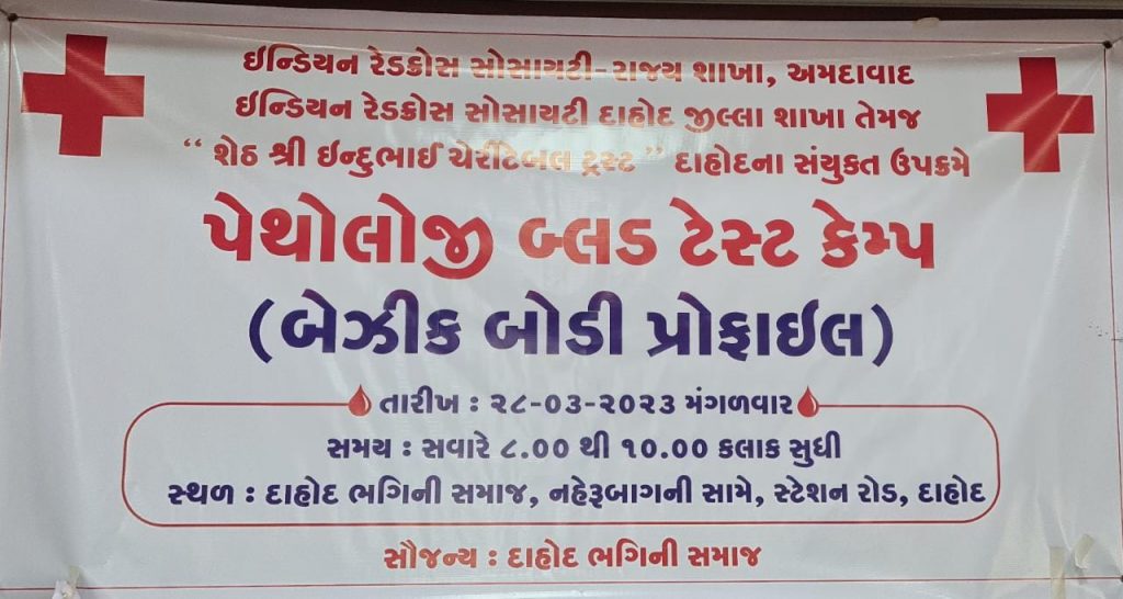 પેથોલોજી બ્લડ ટેસ્ટ કેમ્પ ભગિની સમાજ દાહોદ ખાતે યોજવામાં આવ્યો.