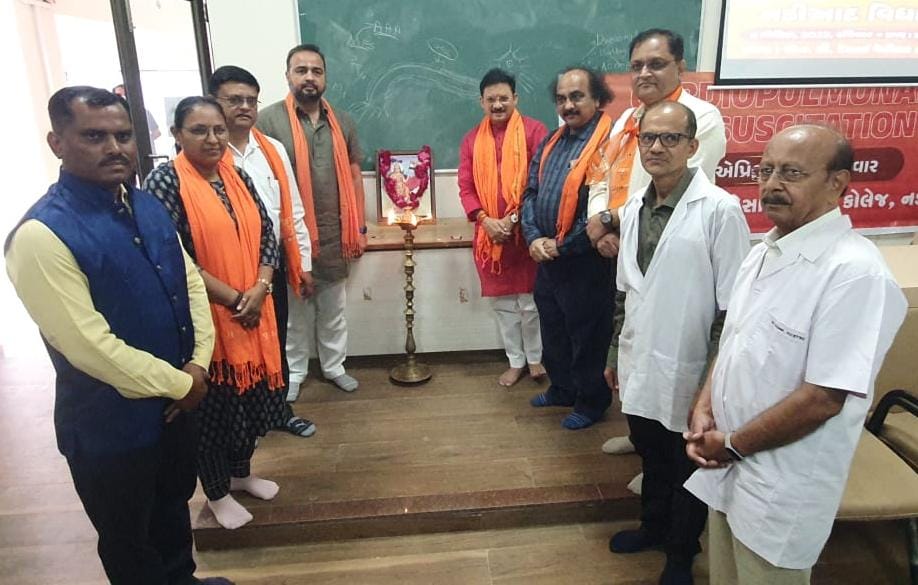 નડિયાદ : ગુજરાત પ્રદેશ ભાજપ પ્રમુખ સી.આર.પાટીલની સુચના અનુસાર તેમજ પ્રદેશ સંગઠન મહામંત્રી રત્નાકરજીના માર્ગદર્શનમાં ભારતીય જનતા પાર્ટી દ્વારા તારીખ ૨ એપ્રિલ ૨૩ ના રોજ નડિયાદ એન.ડી.દેસાઈ મેડિકલ કોલેજમાં સીપીઆર (CARDIOPULMONARY RESUSCITATION) ટ્રેનિંગ અભિયાન અંતર્ગત કાર્યક્રમ યોજાયો હતો.