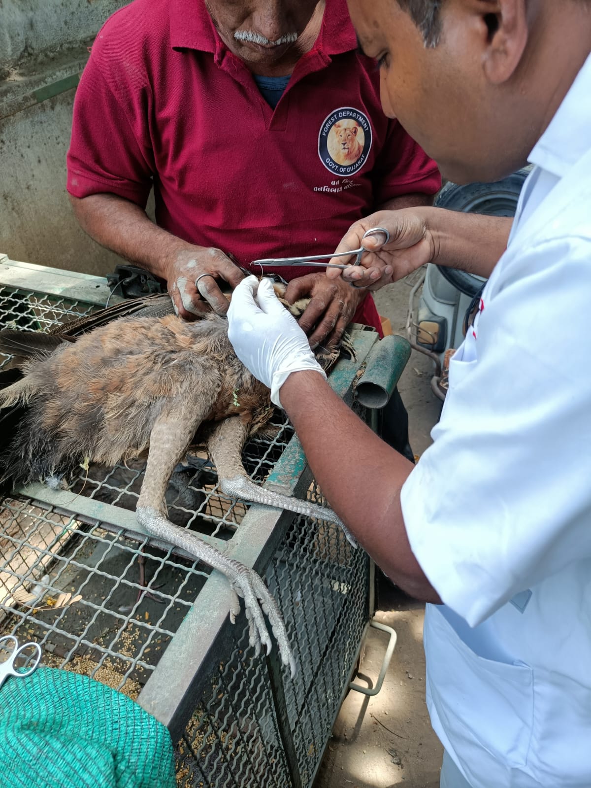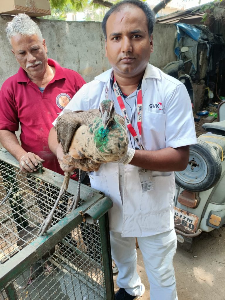 નડિયાદમા ૧૯૬૨ કરુણા એમ્બ્યુલન્સ દ્વારા મોરની સારવાર કરી જીવ બચાવાયો.