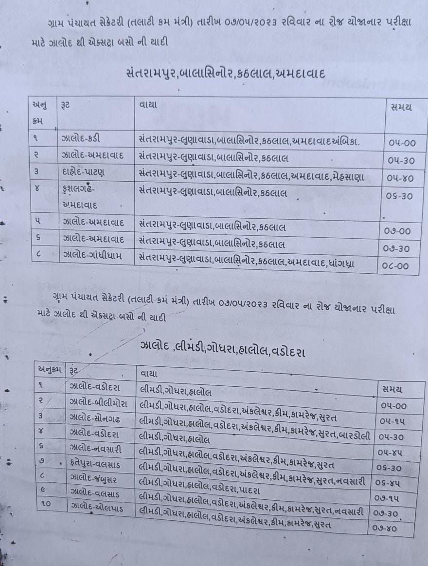 ઝાલોદ એસ.ટી.ડેપો દ્વારા તલાટી ક્રમ મંત્રીની તા.૦૭-૦૫-૨૦૨૩ ને પરીક્ષા દરમિયાન એક્સ્ટ્રા બશોની વ્યવસ્થા કરવામાં આવી.