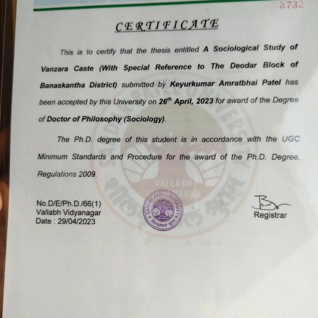 ઝાલોદની શ્રી રામજાનકી ઉ.બુ આશ્રમશાળાના શિક્ષણ સહાયક તરીકે ફરજ બજાવતા શિક્ષક પી.એચ.ડી થતાં નગરનું ગૌરવ વધાર્યું.