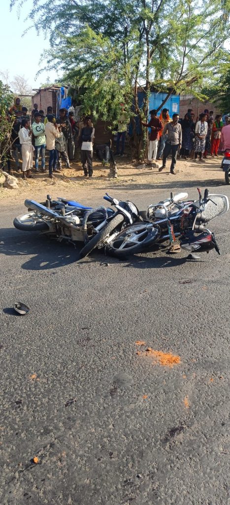 ગરબાડા તાલુકાના નળવાઈ ગામે બે મોટર સાયકલ ભટકાતાં અકસ્માત સર્જાયો:બે ચાલક સહિત એક મહિલા ઇજાગ્રસ્ત.ગરબાડા તાલુકાના નળવાઈ ગામે ગાંગરડી ગરબાડા રોડ પર બે મોટર સાયકલ પૂરપાટ ઝડપે સામસામે અથડાતાં અકસ્માત સર્જાયો હતો.અકસ્માતમાં બે ચાલકો સહિત એક મહિલાને ભારે ઈજાઓ પહોંચી હતી પૂરપાટ ઝડપે ધડાકાભેર અવાજ સાથે મોટર સાયકલ અથડાતાં આસપાસના લોકો દોડી આવ્યા હતા અને ઇજાગ્રસ્તોને ૧૦૮ મારફતે સારવાર અર્થે દાહોદ હોસ્પિટલ ખાતે ખસેડવામાં આવ્યા હતા.