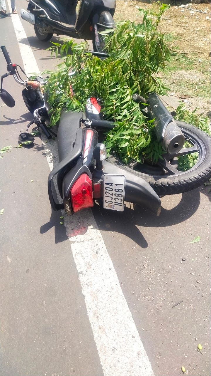 લીમખેડા ઝાલોદ રોડ ઉપર ઝાડ પડતા મોટરસાયકલ સવાર ને ઈજા.