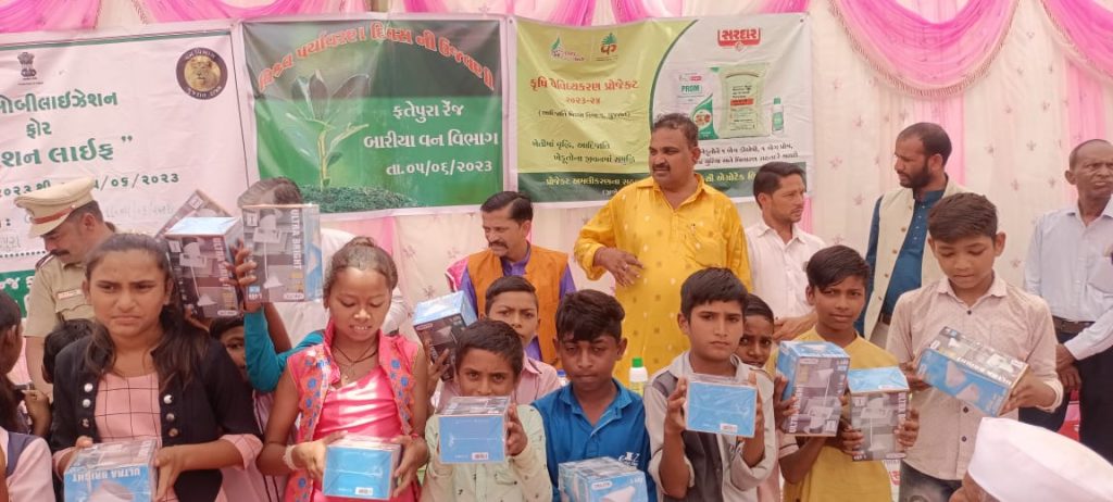 ૫ જૂન વિશ્વ પર્યાવરણ દિવસની ઉજવણી.આજે ૫ જૂન વિશ્વ પર્યાવરણ દિવસની ઉજવણી નિમિત્તે ફતેપુરા તાલુકા કક્ષાનો કાર્યક્રમ માન, ધારાસભ્ય શ્રી રમેશભાઈ કટારા ના અધ્યક્ષ સ્થાને રાખવામાં આવેલ છે. ફતેપુરા તાલુકાના મુખ્ય મથક ફતેપુરા ફતેપુરા મુકામે આવેલ વન વિભાગ વનીકરણ કચેરી ખાતે તાલુકા કક્ષાના વિશ્વ પર્યાવરણ દિવસની ઉજવણી ફતેપુરાના ધારાસભ્ય રમેશભાઈ કટારા ના અધ્યક્ષ સ્થાને રાખવામાં આવેલ હતી જેમાં જિલ્લા પંચાયતના પૂર્વ કારોબારી અધ્યક્ષ ડોક્ટર અશ્વિનભાઈ પારગી ભાજપના અગ્રની કાર્યકર્તા અને જિલ્લા પંચાયતના સભ્ય શ્રી ના પતિ ના ટીનાભાઈ પારગી ભાજપ ના પીઢ કાર્યકર્તા ચુનીલાલભાઈ ચરપોટ વન વિભાગ વણીકરણ કચેરીના અધિકારીશ્રીઓ કર્મચારીઓ નાયબ તાલુકા વિકાસ અધિકારી શ્રી અસારી તેમજ મોટી સંખ્યામાં ગ્રામજનો હાજર રહ્યા હતા સેન્દ્રીય ખાતર કીટ વિતરણ નો શુભારંભ પણ ધારાસભ્ય શ્રી રમેશભાઈ કટારા ના હસ્તે કરવામાં આવ્યું હતું કાર્યક્રમના અનુરૂપ નેતા ગણ દ્વારા ઉદબોદન કરવામાં આવ્યું હતું ઉપસ્થિત મહાનુભવોના વરદૃ હસ્તે વૃક્ષારોપણ કરવામાં આવ્યું હતું પ્રધાનમંત્રી આવાસ યોજના અંતર્ગત ટૂંકા સમયમાં શ્રેષ્ઠ કામગીરી કરનાર લાભાર્થીઓને ધારાસભ્ય શ્રી રમેશભાઈ કટારા ના હસ્તે ઇનામ વિતરણ કરાશે.