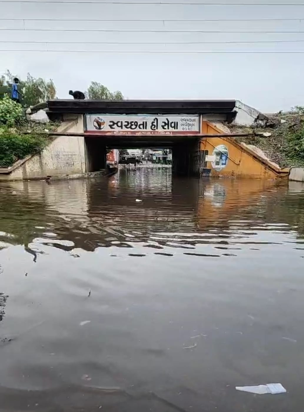 નડિયાદમાં વરસાદ પડતાં નીચાણવાળા વિસ્તારોમાં પાણી ભરાયાશ્રેયસ ગરનાળામાં સ્કૂલ બસ ફસાઈ.