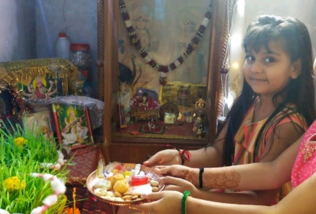 લુણાવાડાની નાની બાળાઓએ ધરમાંજ ગૌળીવ્રતની પુજા અચૅના કરી.
