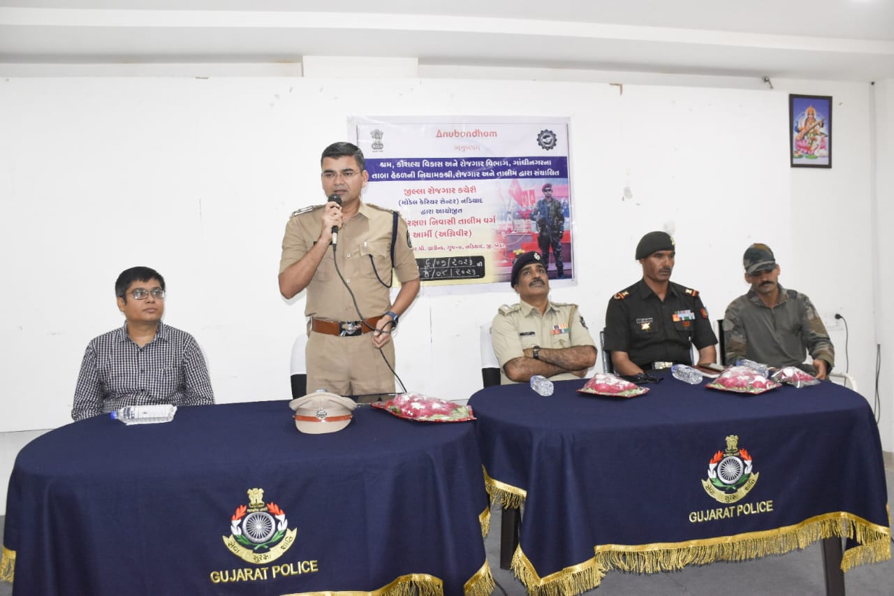 જિલ્લા રોજગાર કચેરી નડિયાદ દ્વારા એસ.આર.પી ગ્રાઉન્ડ ખાતે પૂર્વ સંરક્ષણ નિવાસી તાલીમ વર્ગની શરૂઆત કરવામાં આવી