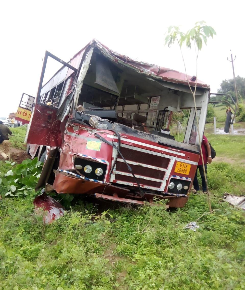 નડિયાદ નજીકના અમદાવાદ-વડોદરા એક્સપ્રેસ હાઇવે પરથી. કાર અને એસટી બસ વચ્ચે ધડાકાભેર અકસ્માત સર્જાતાં બે લોકોના ઘટના સ્થળે જ મોત થયા છે. જ્યારે ૧૦થી વધુ લોકો ઇજાગ્રસ્ત થયા છે. આ અકસ્માત એટલો ભયંકર હતો કે કારનું પડીકુવળી ગયું છે. જ્યારે એસ.ટી. બસ ડિવાઇડર તોડીને હાઇવેની નીચે ઉતરી ગઇ હતી. નડિયાદ પાસે અમદાવાદ-વડોદરા એક્સપ્રેસ હાઇવે પર મંગળવારે સવારે અહીંયા કાર અને એસટી બસ વચ્ચે ગમખ્વાર અકસ્માત સર્જાયો હતો. બન્નેની ટક્કર એટલી જોરદાર હતી કે, કાર હાઈવે પર જ ઉથલી પડી હતી, જ્યારે એસટી બસ રેલીંગ તોડી બાજુની સાઈડમાં ખાડામાં ઉતરી ગઇ હતી. બંન્ને વાહનોને ભારે નુકશાન પહોંચ્યું હતું. કારમાં સવાર બે લોકોના ઘટના સ્થળે મોત થયા છે. જ્યારે એસટી ખાડામાં પડતા ઈમરજન્સી દરવાજા મારફતે મુસાફરોને બહાર કાઢવામાં આવ્યા હતા. અકસ્માતની જાણ થતાં નડિયાદ, આણંદ, ઉત્તરસંડાની ૧૦૮ની પાચ એમ્બ્યુલન્સ ઘટના સ્થળે પહોંચી ગઈ હતી. તમામ ઈજાગ્રસ્તોને સારવાર માટે નડિયાદની સિવિલ હોસ્પિટલમાં સારવાર અર્થે ખસેડવામાં આવ્યા છે. અકસ્માત સંદર્ભે તપાસ કરનાર પોલીસ અધિકારી પી.જી.પરમારે જણાવ્યું હતું કે, આ અકસ્માતની ઘટનામાં બે વ્યક્તિઓના કમકમાટી ભર્યા મોત નિપજયા છે. જેમાં મરણજનાર જઈદઅલી સૈયદ અને બીજો તેનો મિત્ર સમીર જે બંને સાસણગીરના રહેવાસી છે. આજે તેઓ અમદાવાદથી દાહોદ જતાં હતા આ દરમિયાન આ અકસ્માત સર્જાયો છે. આ કારમાંથી ‘MLA GUJARAT’ લખેલી નેમ પ્લેટ મળી છે. જે આઇડેન્ટી ફાઈ કરવામાં પોલીસ લાગી છે. હાલ સુધીની તપાસમાં આ બંન્નેના કોઈ મિત્ર જે અમદાવાદ ખાતે રહે છે તેની કાર હોવાનું માલુમ પડ્યું છે. જોકે આ કાર કોઈ MLA કે તેના સંબંધીની નથી.