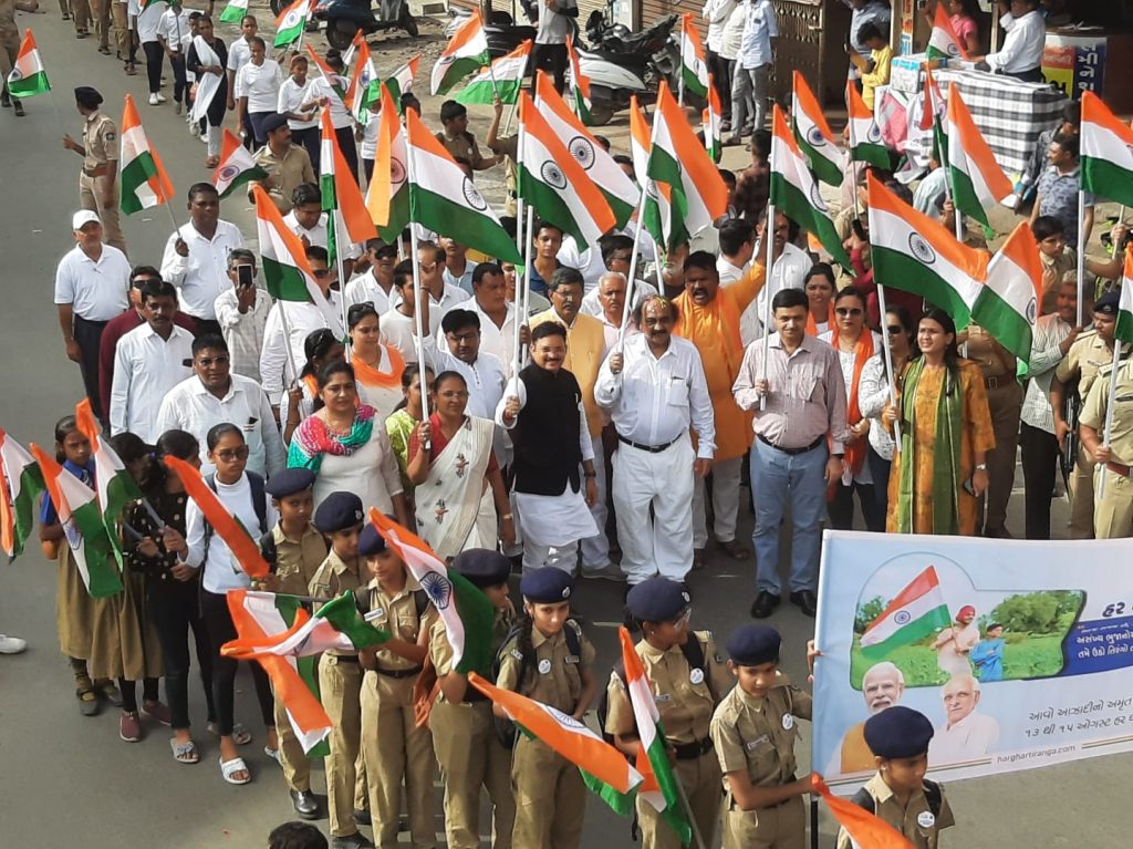 કેન્દ્રીય મંત્રી  દેવુસિંહ ચૌહાણ તથા નડિયાદ ધારાસભ્ય પંકજભાઈ દેસાઈની આગેવાની સાથે નડિયાદ નગરપાલિકા વિસ્તારમાં તિરંગા યાત્રા યોજાઇ.